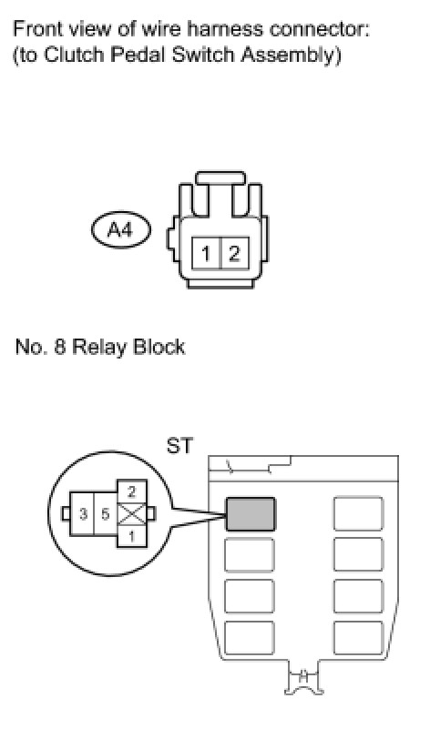 13. CHECK HARNESS AND CONNECTOR (ST RELAY - CLUTCH PEDAL SWITCH)