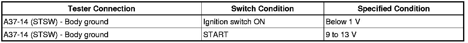 (g) Check the result when the ignition switch is turned ON and START positions.