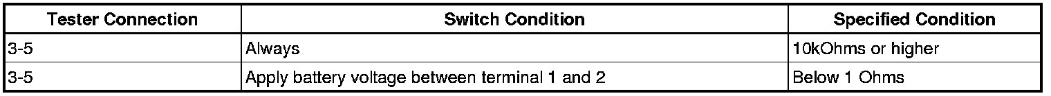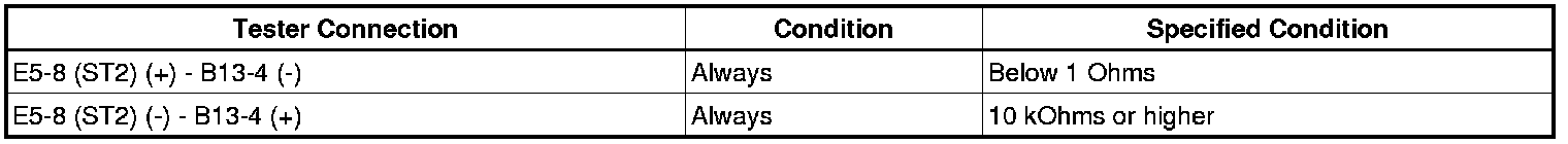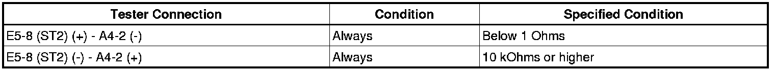 HINT: When measuring the resistance, it is necessary to reverse the positive (+) and negative (-) tester probes because there is a diode in the wire harness.