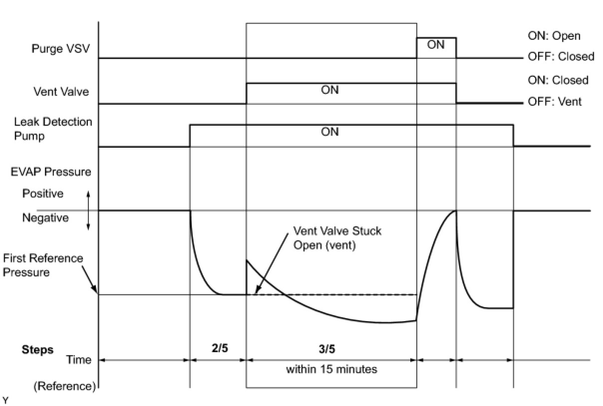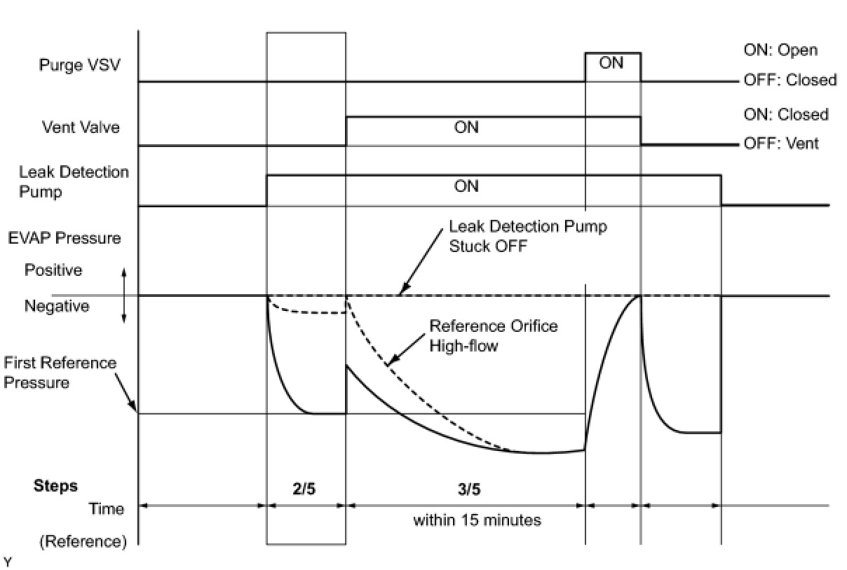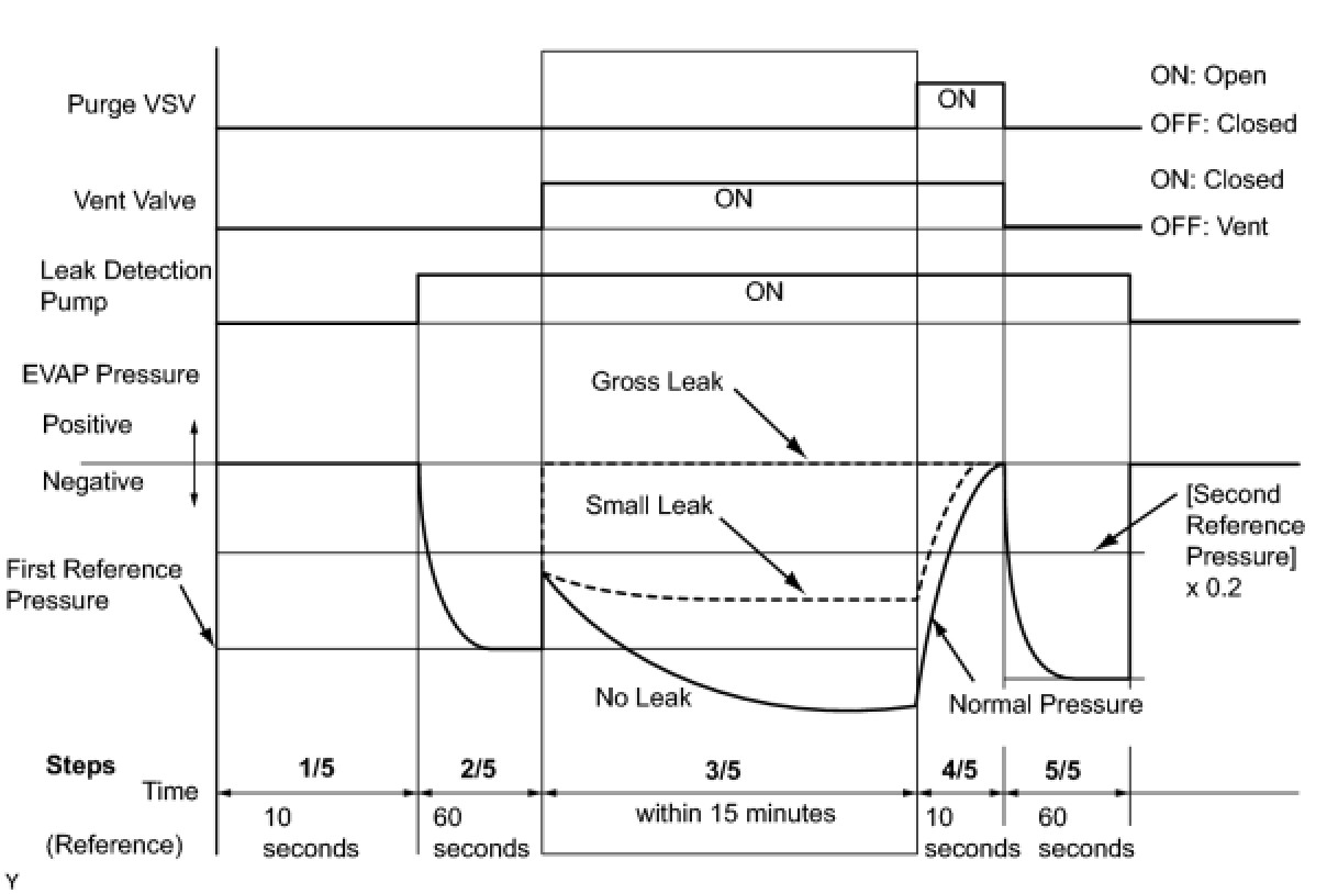 (b) Compare the EVAP pressure in step 3/5 and the second reference pressure (step 5/5).