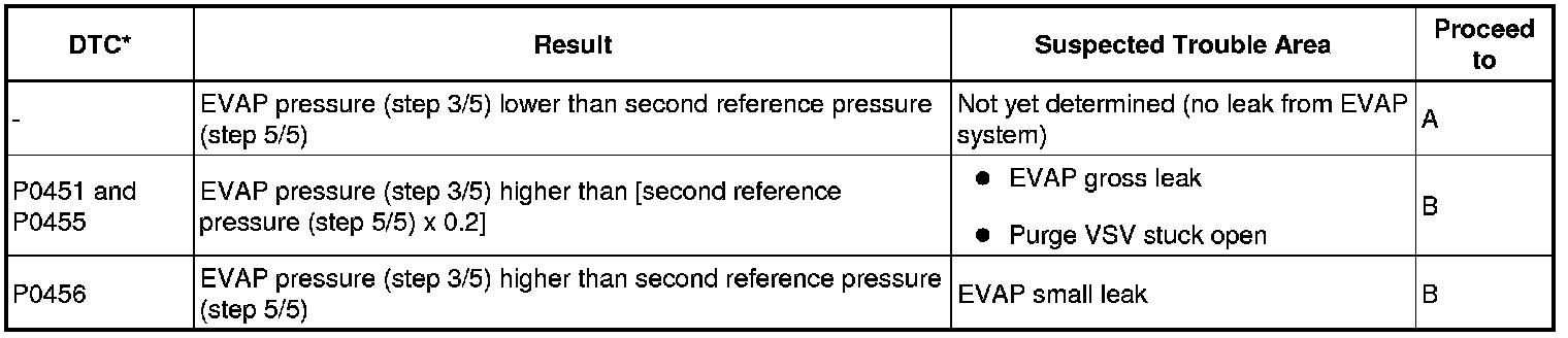 NOTE: If the reference pressure difference between the first and second checks is greater than the specification, all the DTCs relating to the reference pressure (P043E, P043F, P2401, P2402 and P2419) are stored.