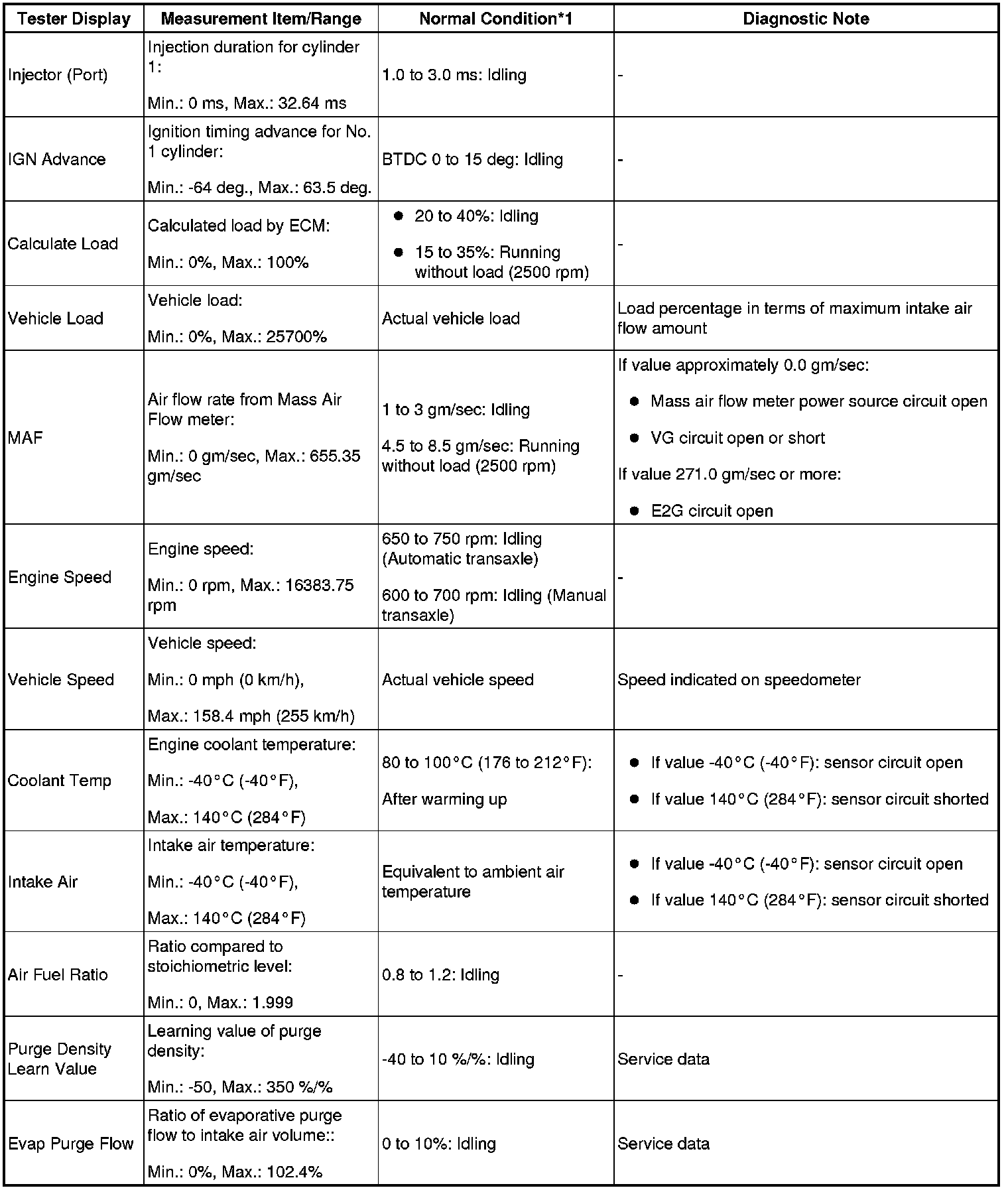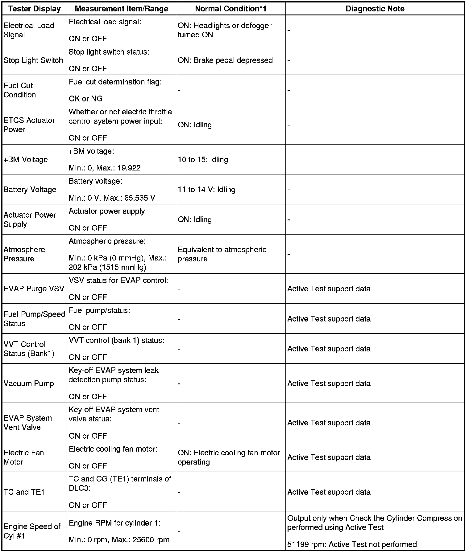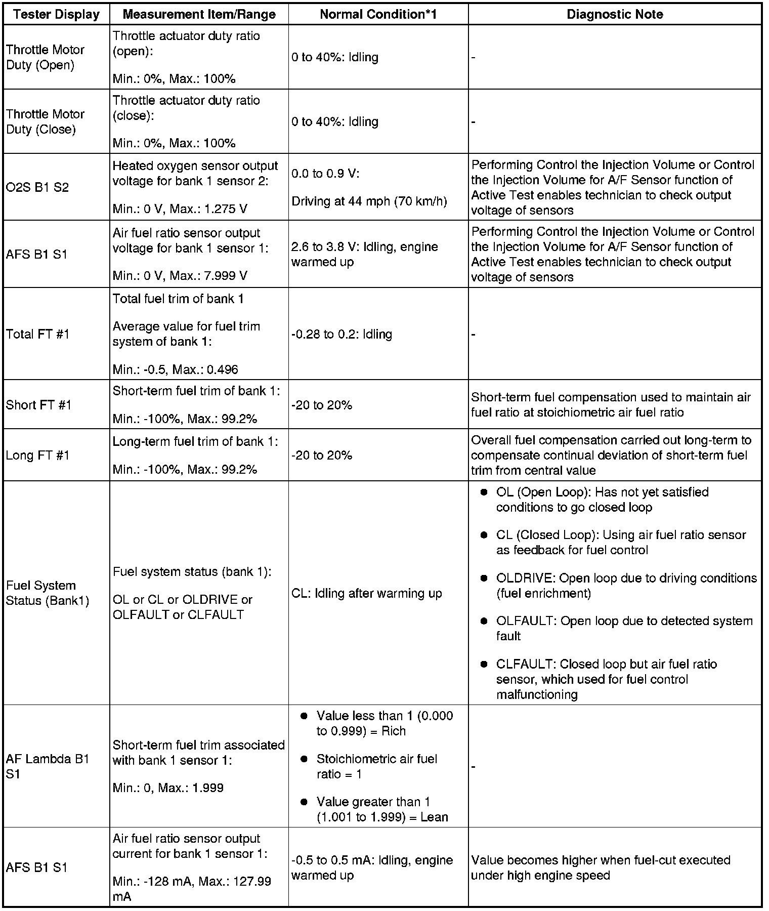 - *1: If no idling conditions are specified, the shift lever should be in N or P, and the A/C switch and all accessory switches should be off.