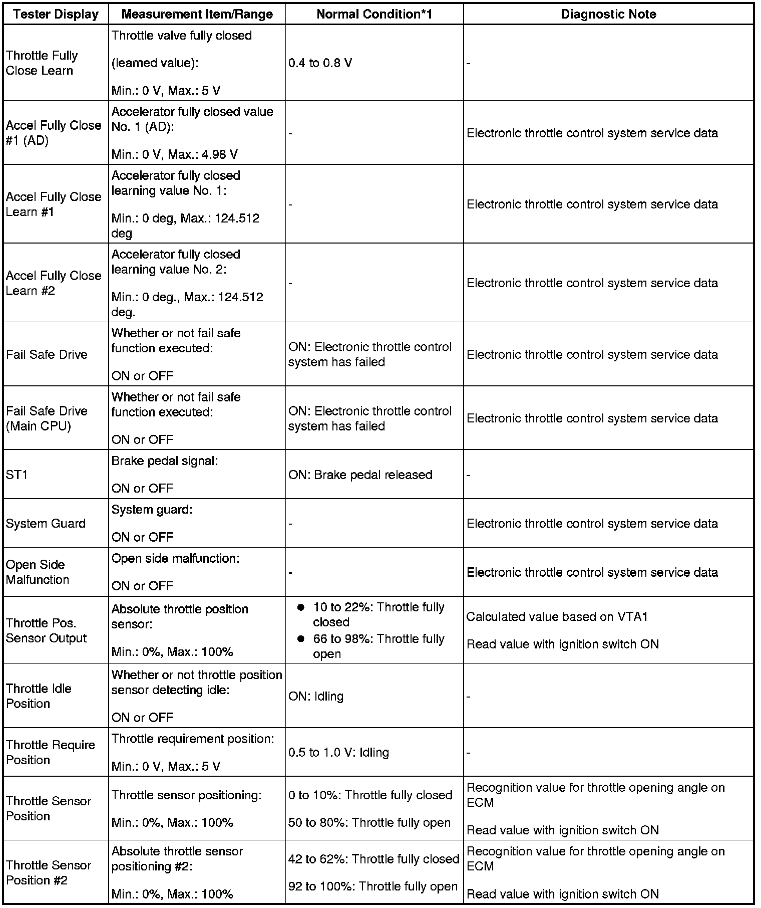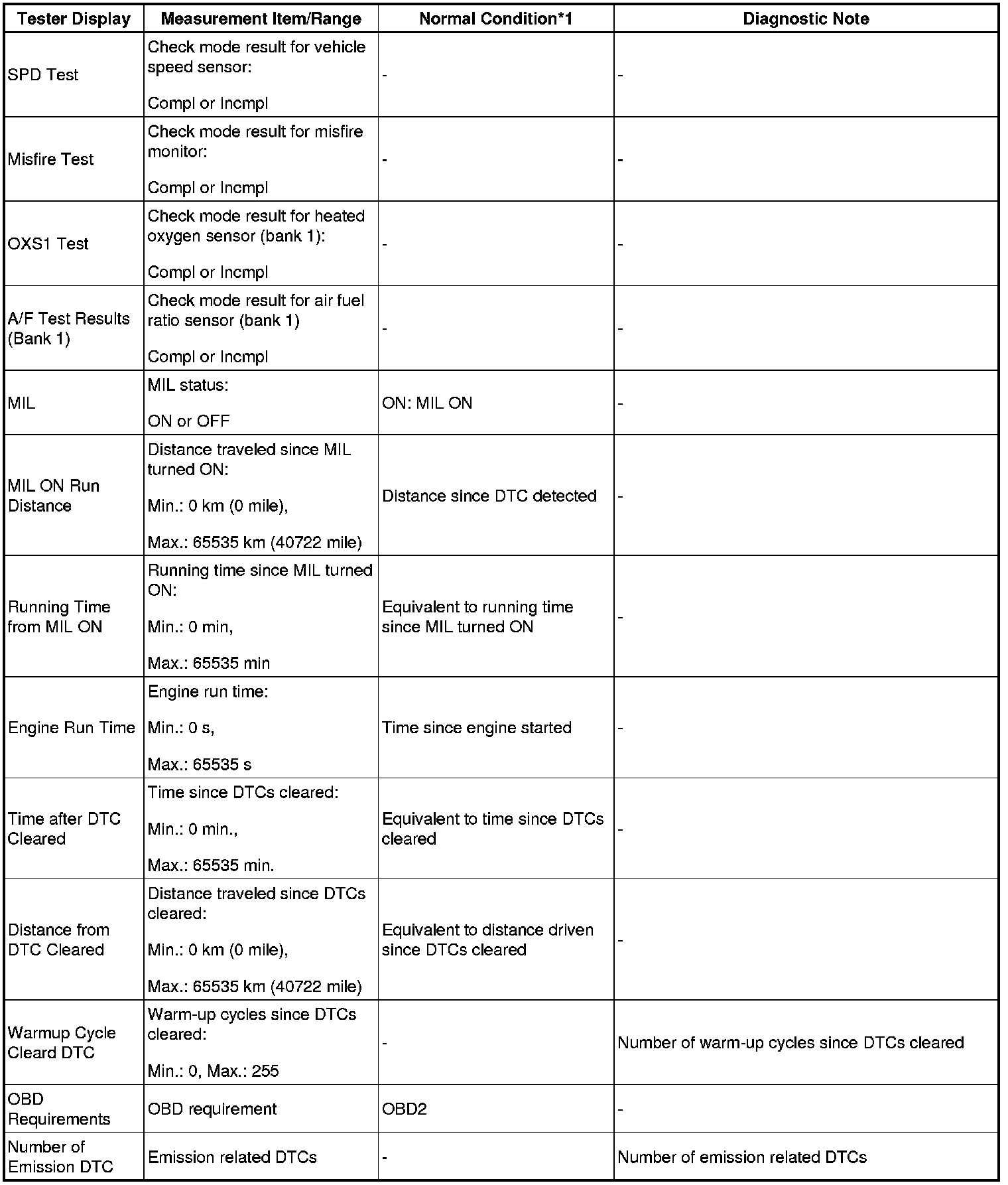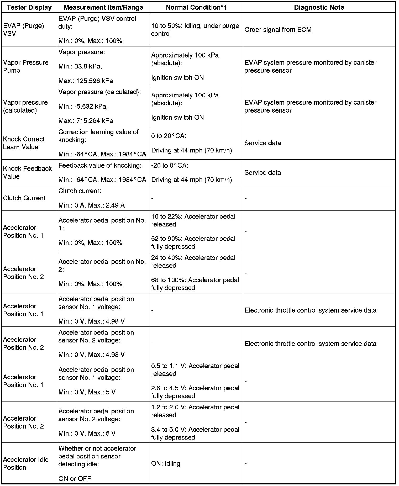 - *1: If no idling conditions are specified, the shift lever should be in N or P, and the A/C switch and all accessory switches should be off.