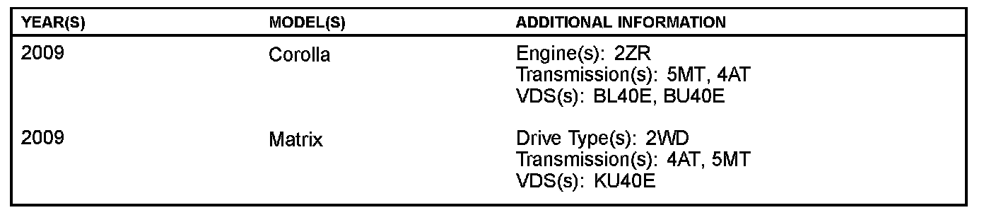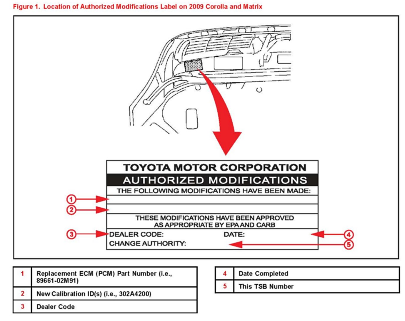 Under certain driving conditions some 2009 model year Corolla and Matrix vehicles may exhibit engine oil consumption. The Engine Control Module/ECM (SAE term: Powertrain Control Module/PCM) logic has been modified to improve this condition. Use the following repair procedure to address customer concerns.