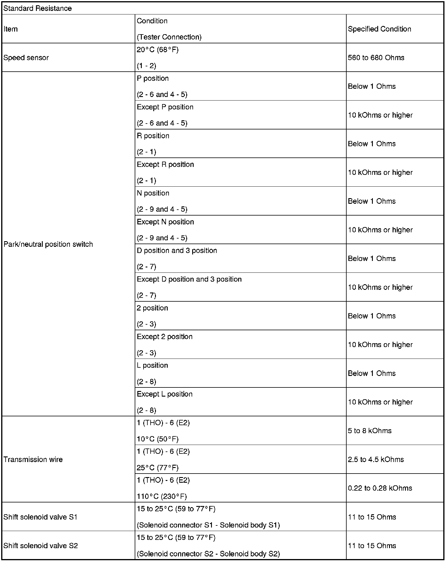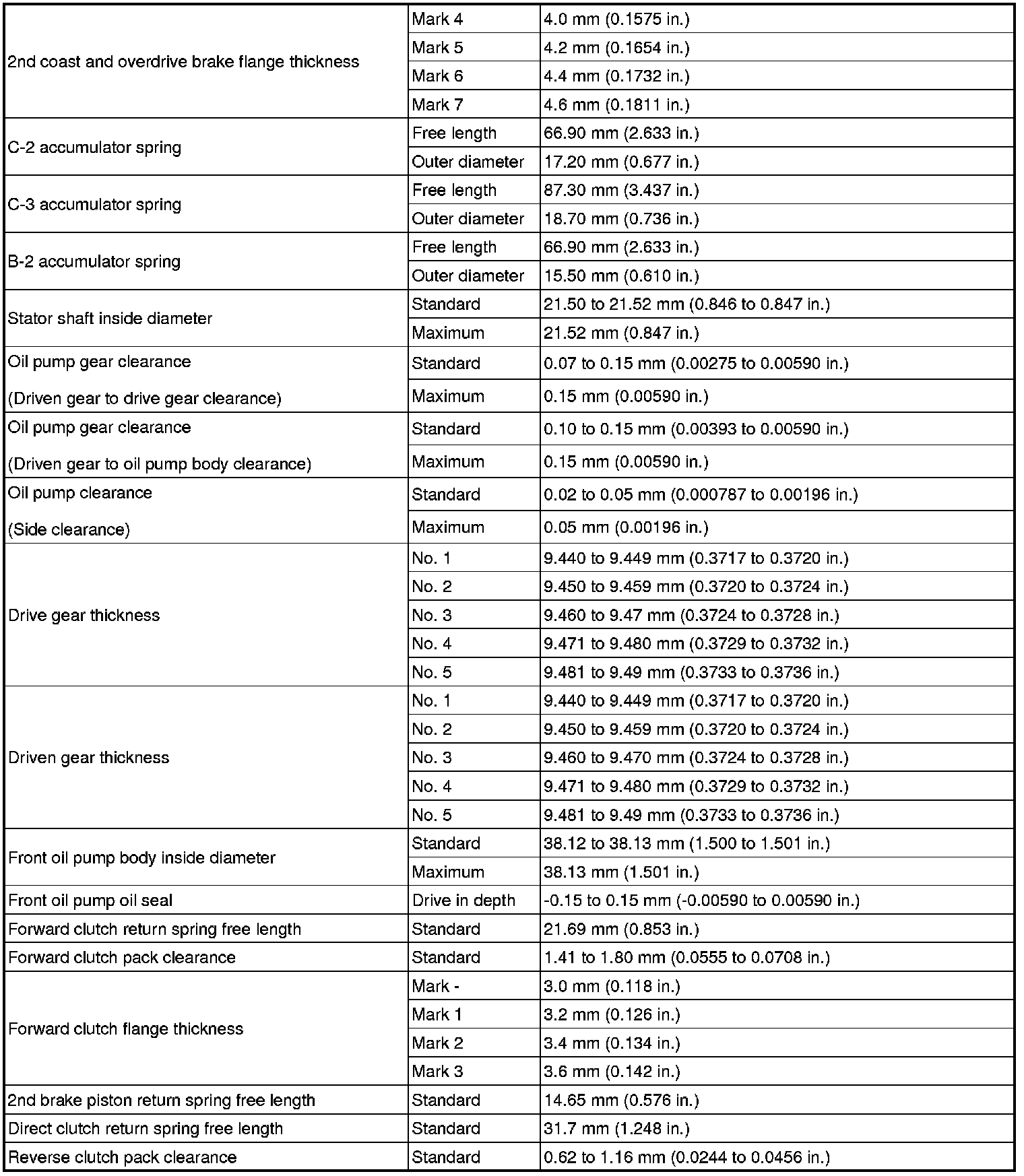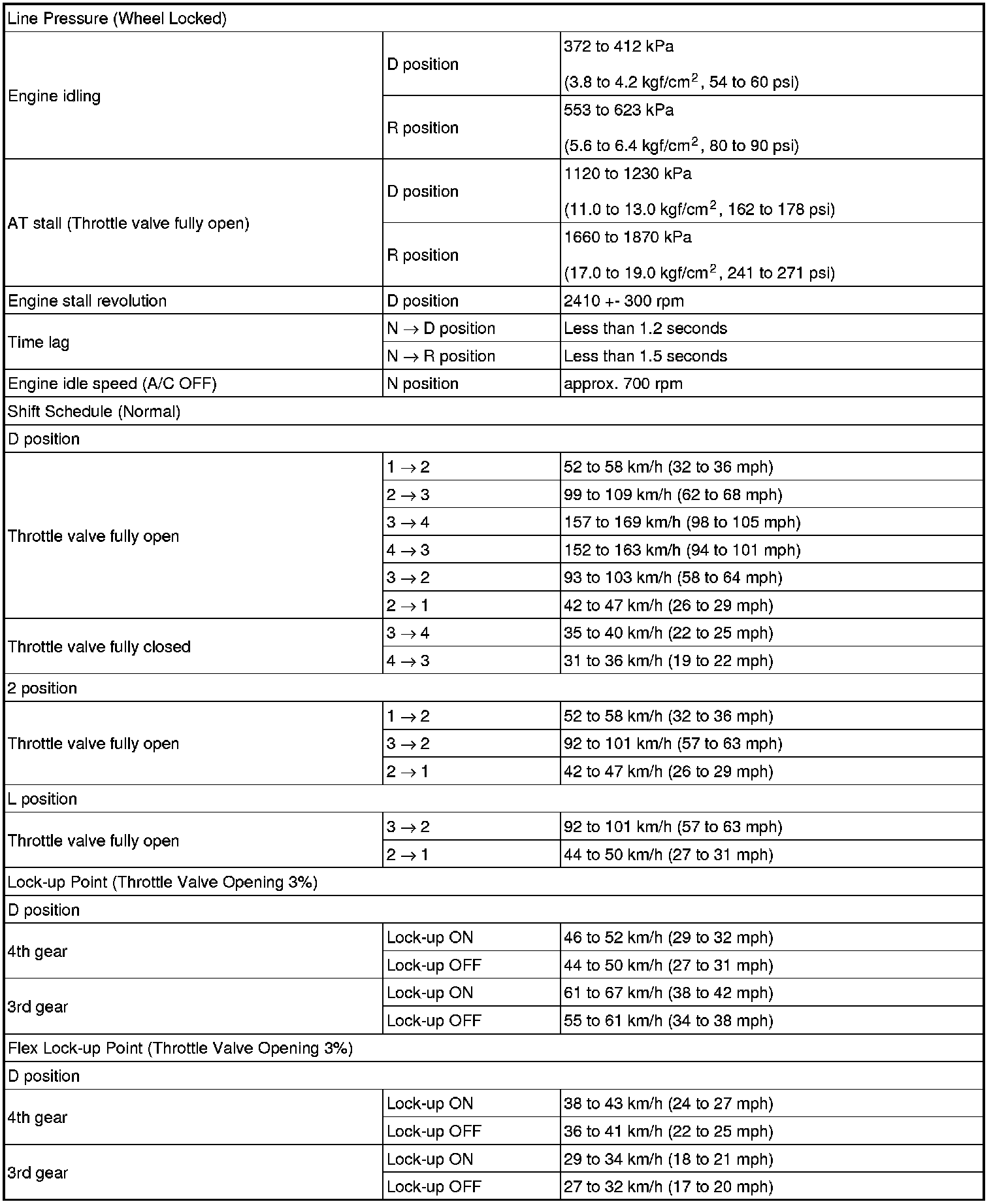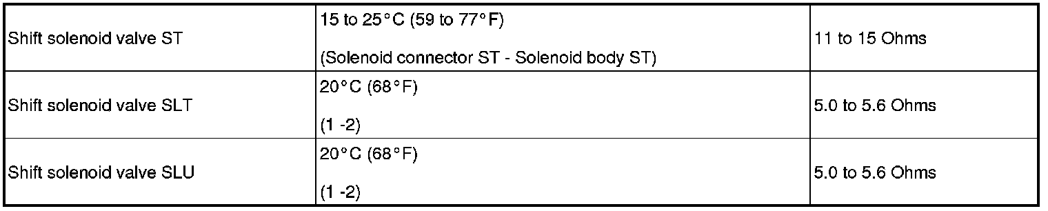 SPECIFICATIONS: U341E AUTOMATIC TRANSMISSION / TRANSAXLE: SERVICE DATA