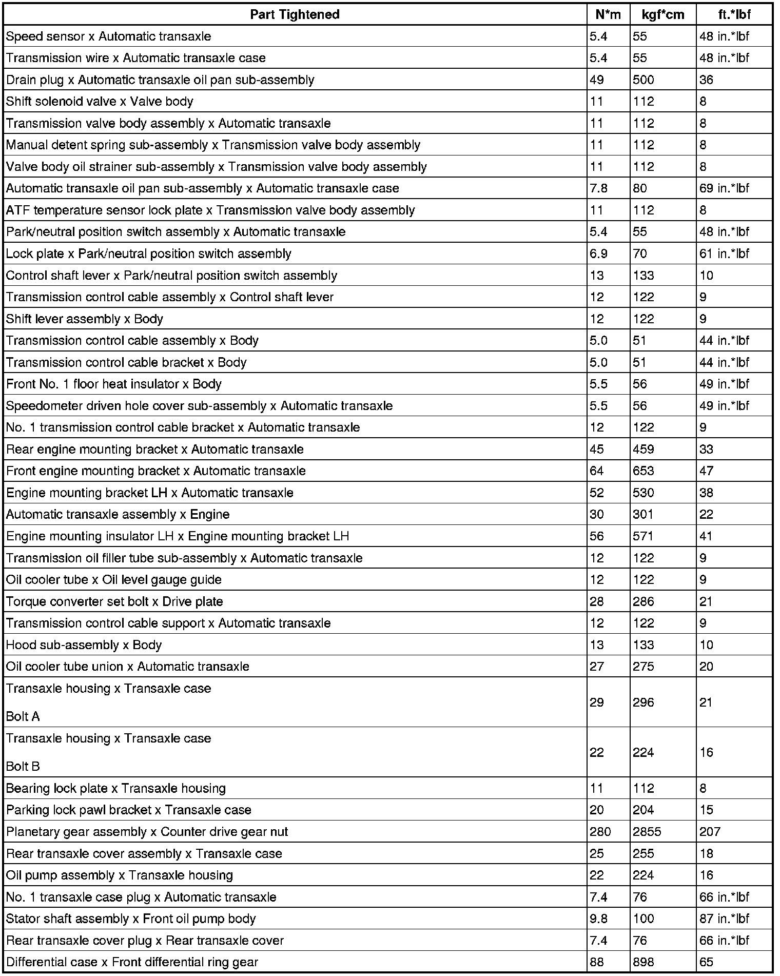 SPECIFICATIONS: U341E AUTOMATIC TRANSMISSION / TRANSAXLE: TORQUE SPECIFICATIONS