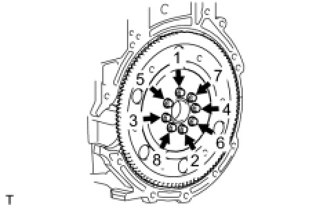 In several steps, uniformly install and tighten the 8 bolts in the sequence shown in the illustration.