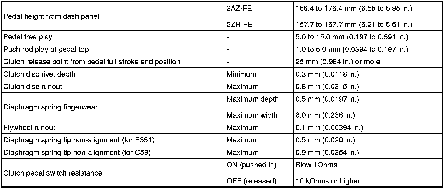 SPECIFICATIONS: CLUTCH: SERVICE DATA