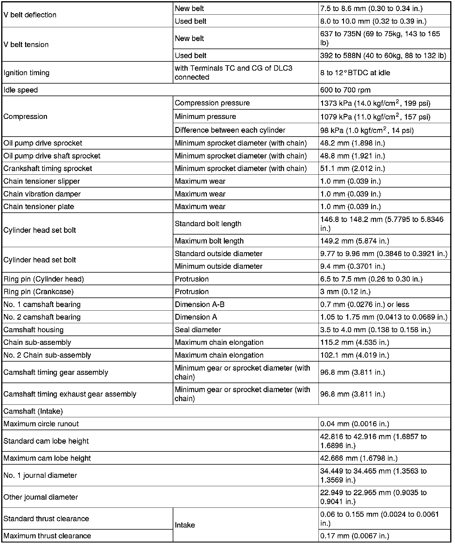 SPECIFICATIONS: 2ZR-FE ENGINE MECHANICAL: SERVICE DATA