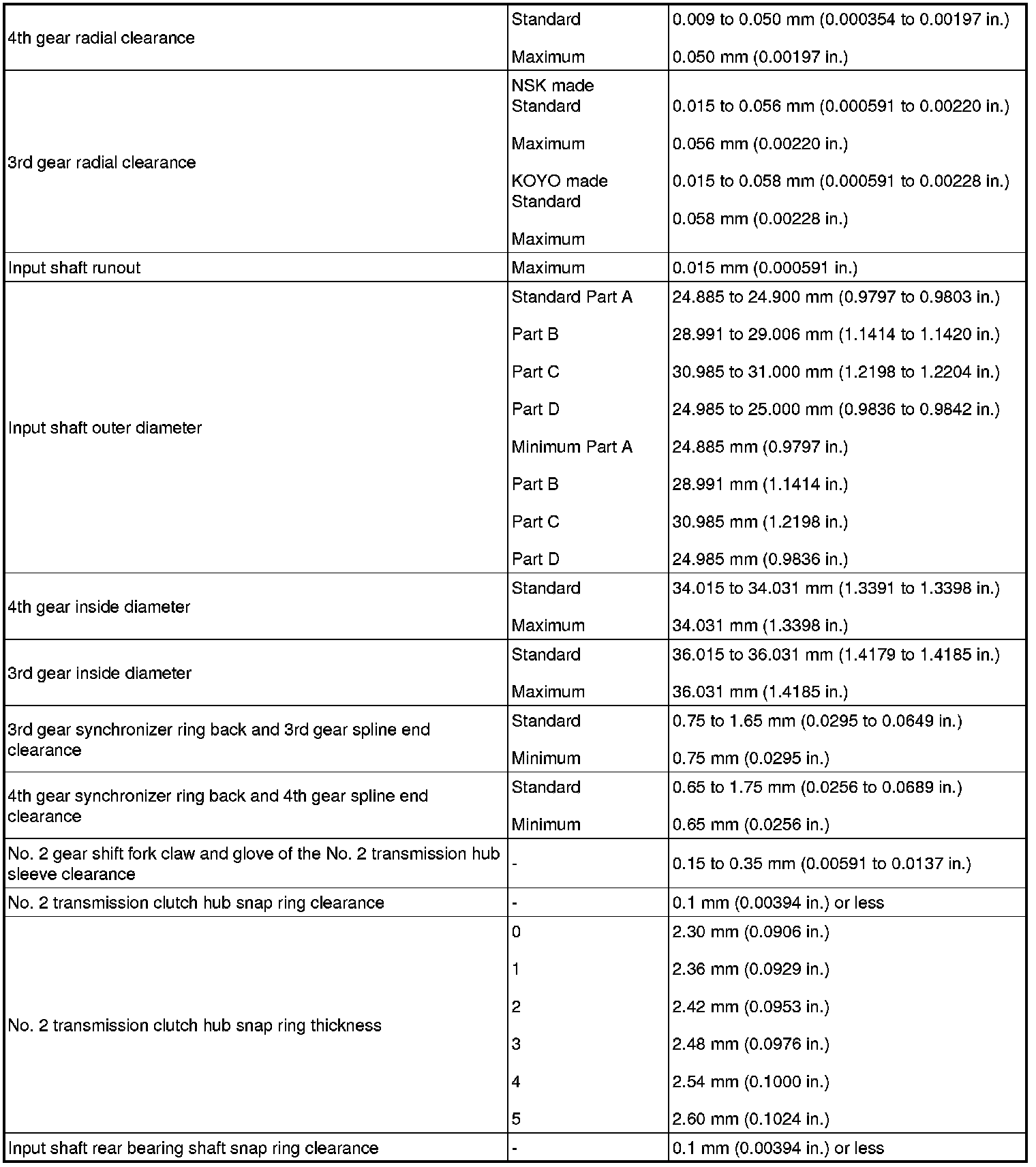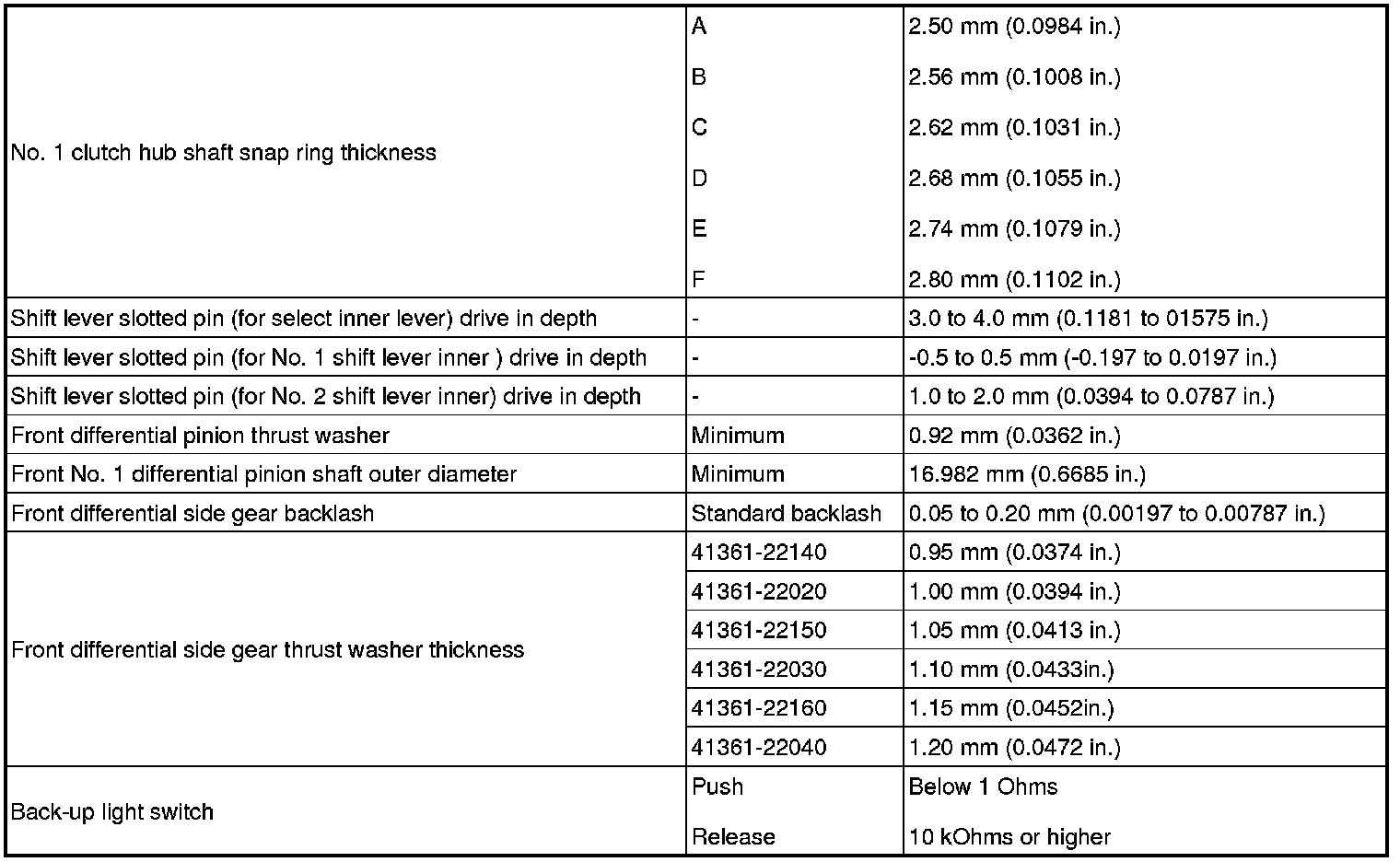 SPECIFICATIONS: C59 MANUAL TRANSMISSION / TRANSAXLE: SERVICE DATA