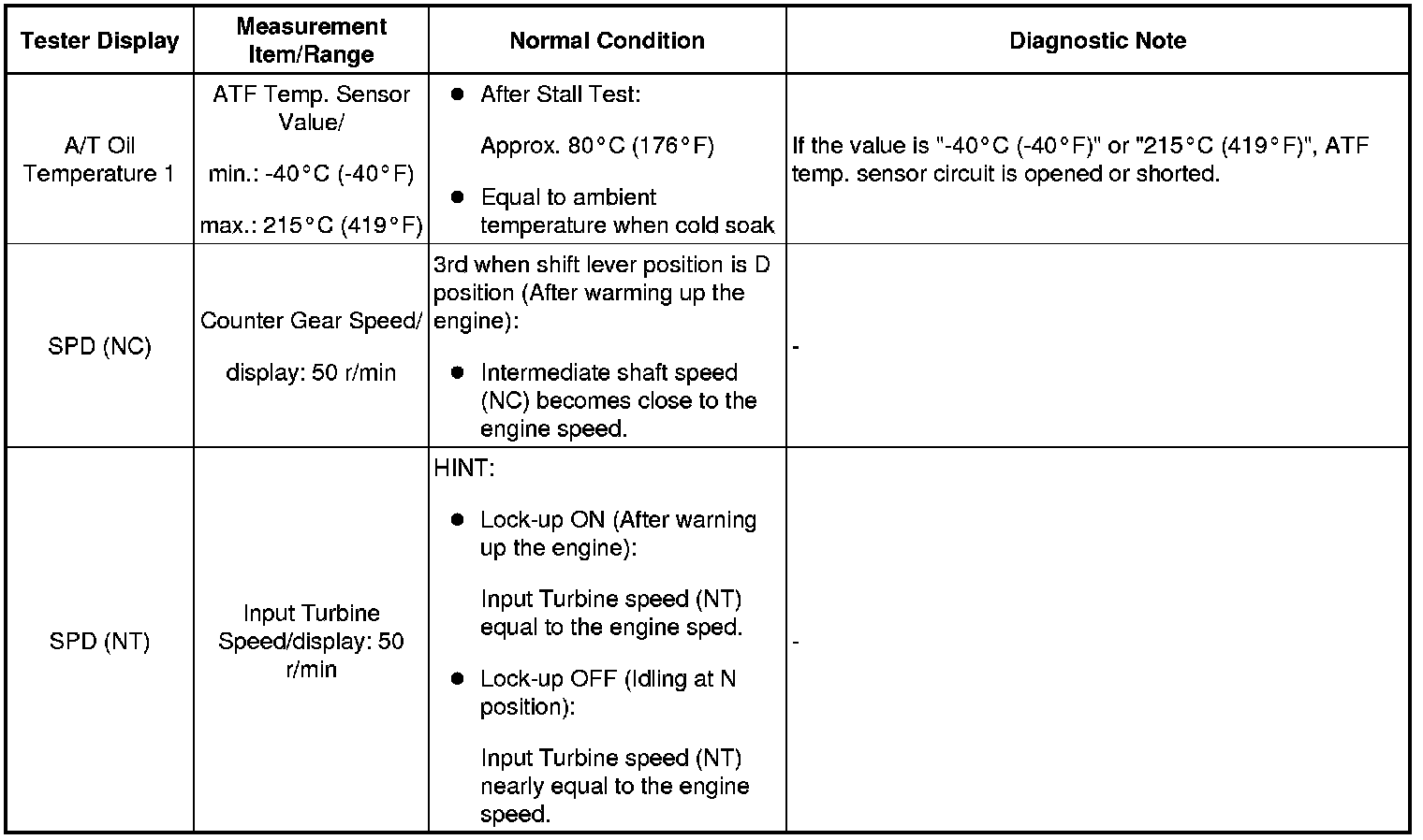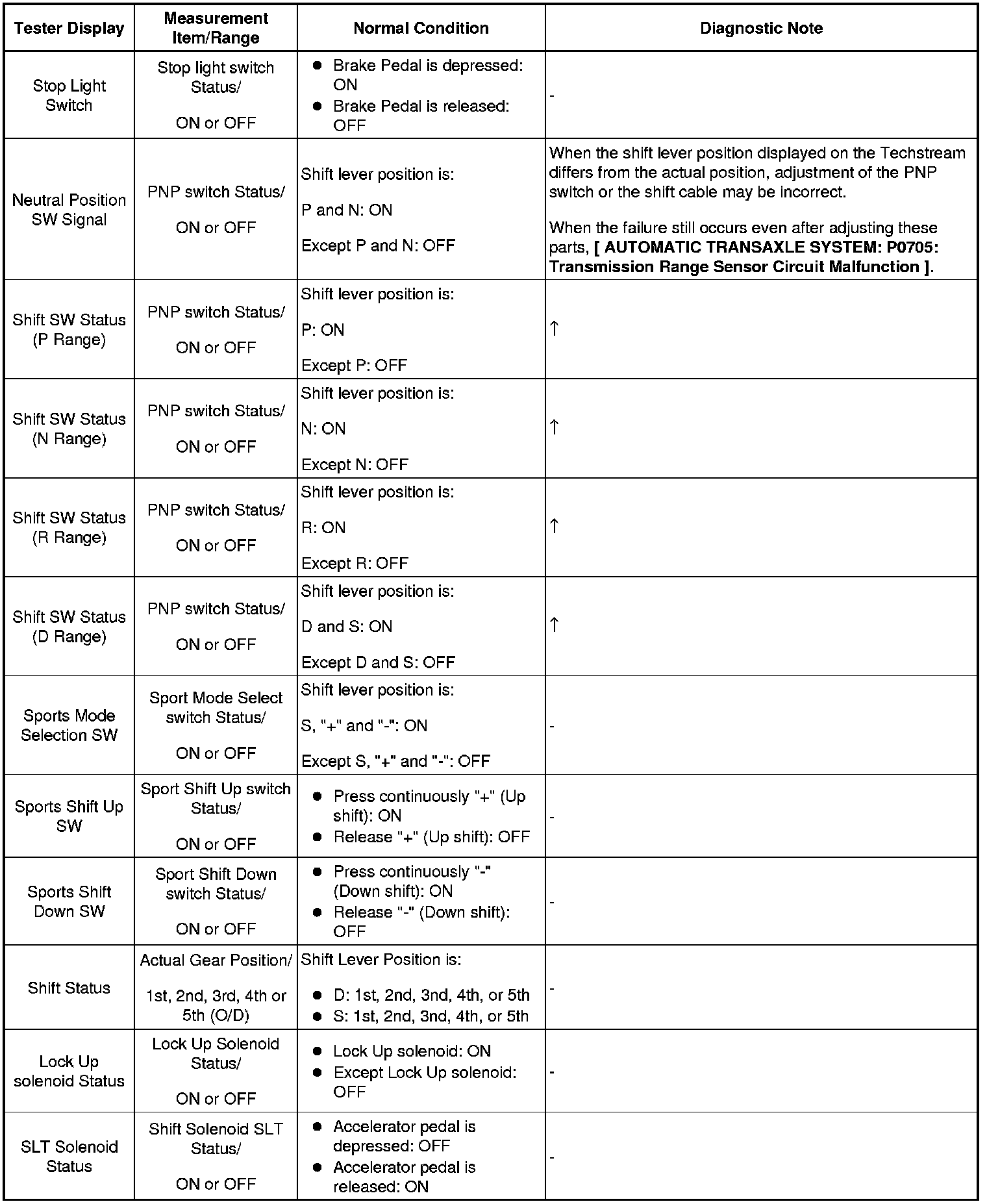 Home >> Toyota >> 2009 >> Matrix FWD L4-2.4L (2AZ-FE) >> Repair and Diagnosis >> Powertrain Management >> Transmission Control Systems >> Testing and Inspection >> Scan Tool Testing and Procedures