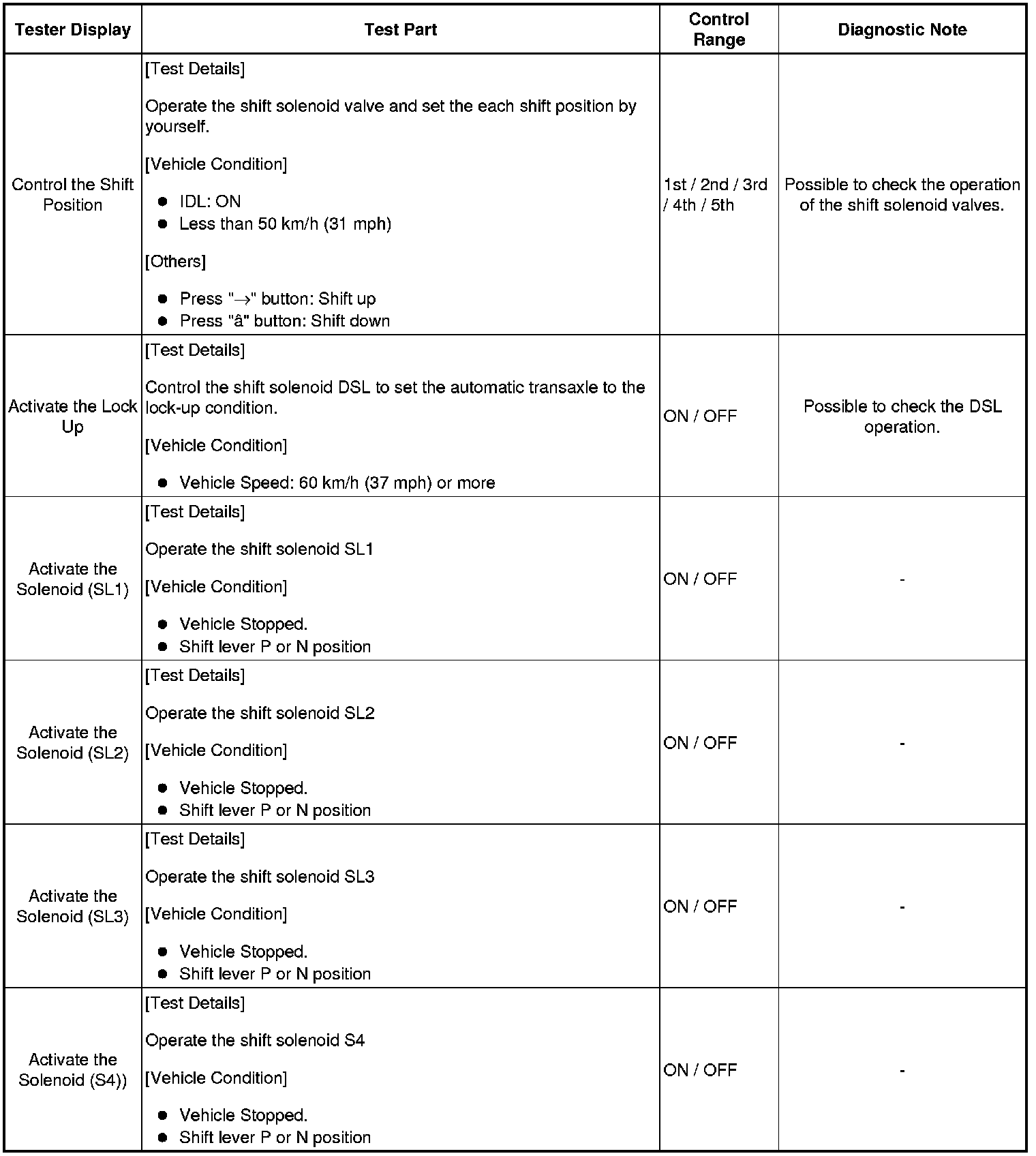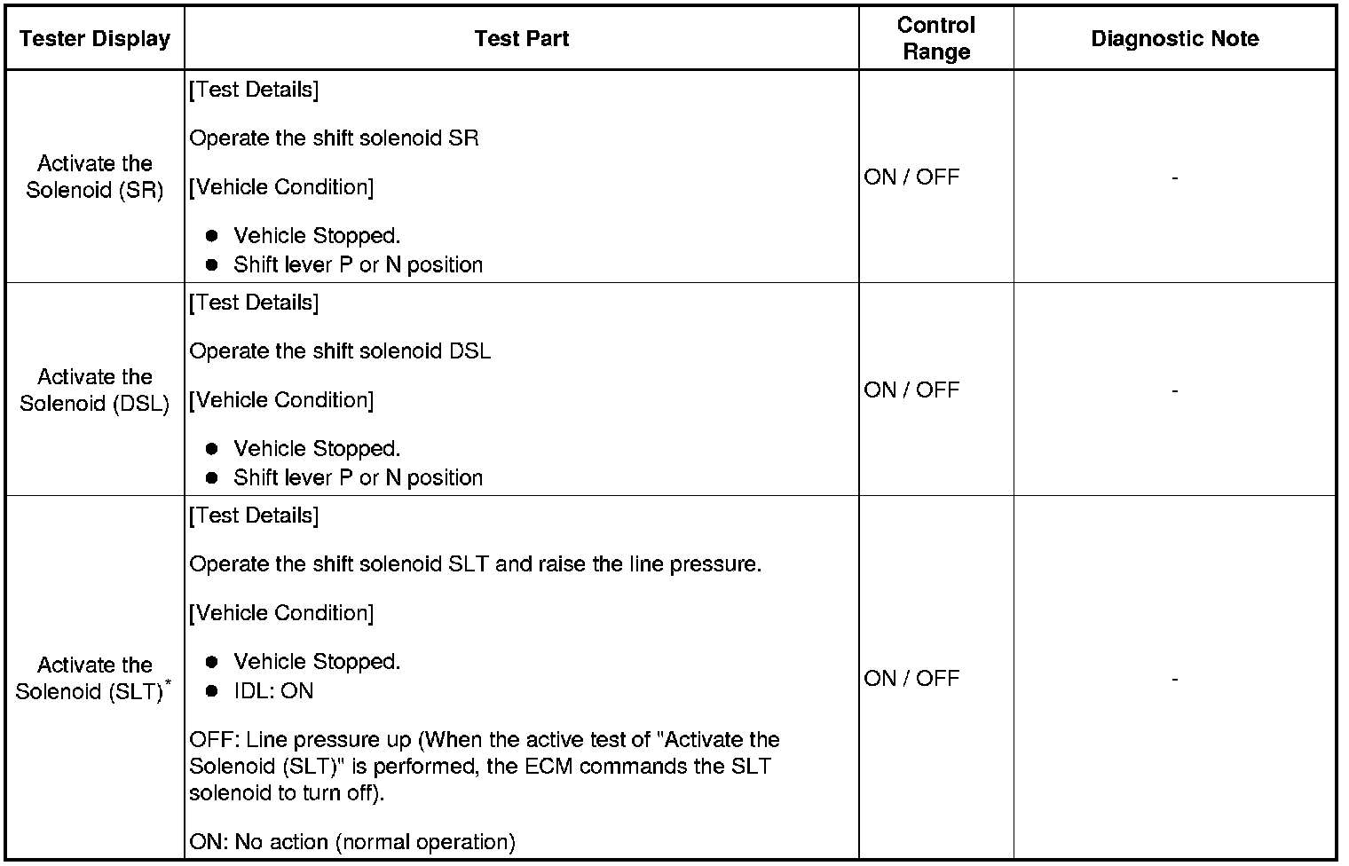 *: "Activate the Solenoid (SLT)" in the Active Test is performed to check the line pressure changes by connecting the SST to the automatic transaxle, which is used in the HYDRAULIC TEST Hydraulic Test as well.