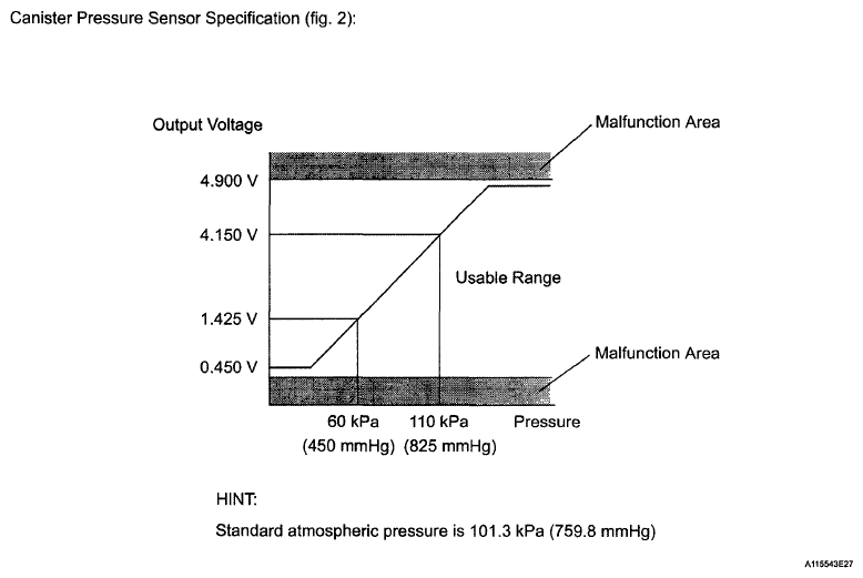 | (b) Canister pressure sensor | Indicates pressure as voltages. ECM supplies regulated 5 V to canister pressure sensor, and uses feedback from sensor to monitor EVAP system pressure (refer to Fig 5). |
