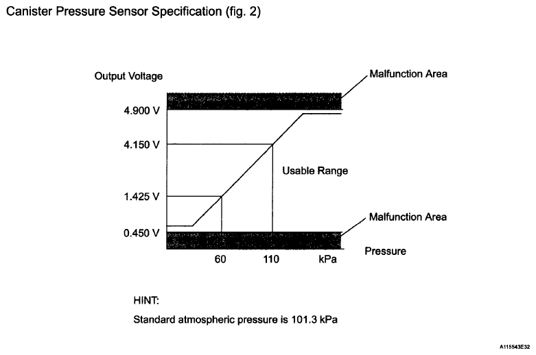 | (b) Canister pressure sensor | Indicates pressure as voltage. ECM supplies regulated 5 V to canister pressure sensor, and uses feedback from sensor to monitor EVAP system pressure (refer to Fig 5). |