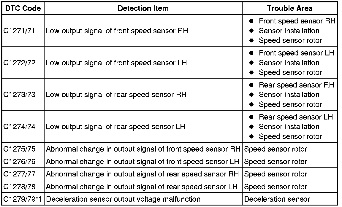 * During Test Mode (signal check), the skid control ECU records all DTCs of the sensor check function. By performing Test Mode (signal check), the codes are cleared if a normal condition is confirmed. The remaining codes are the codes where a malfunction was found.