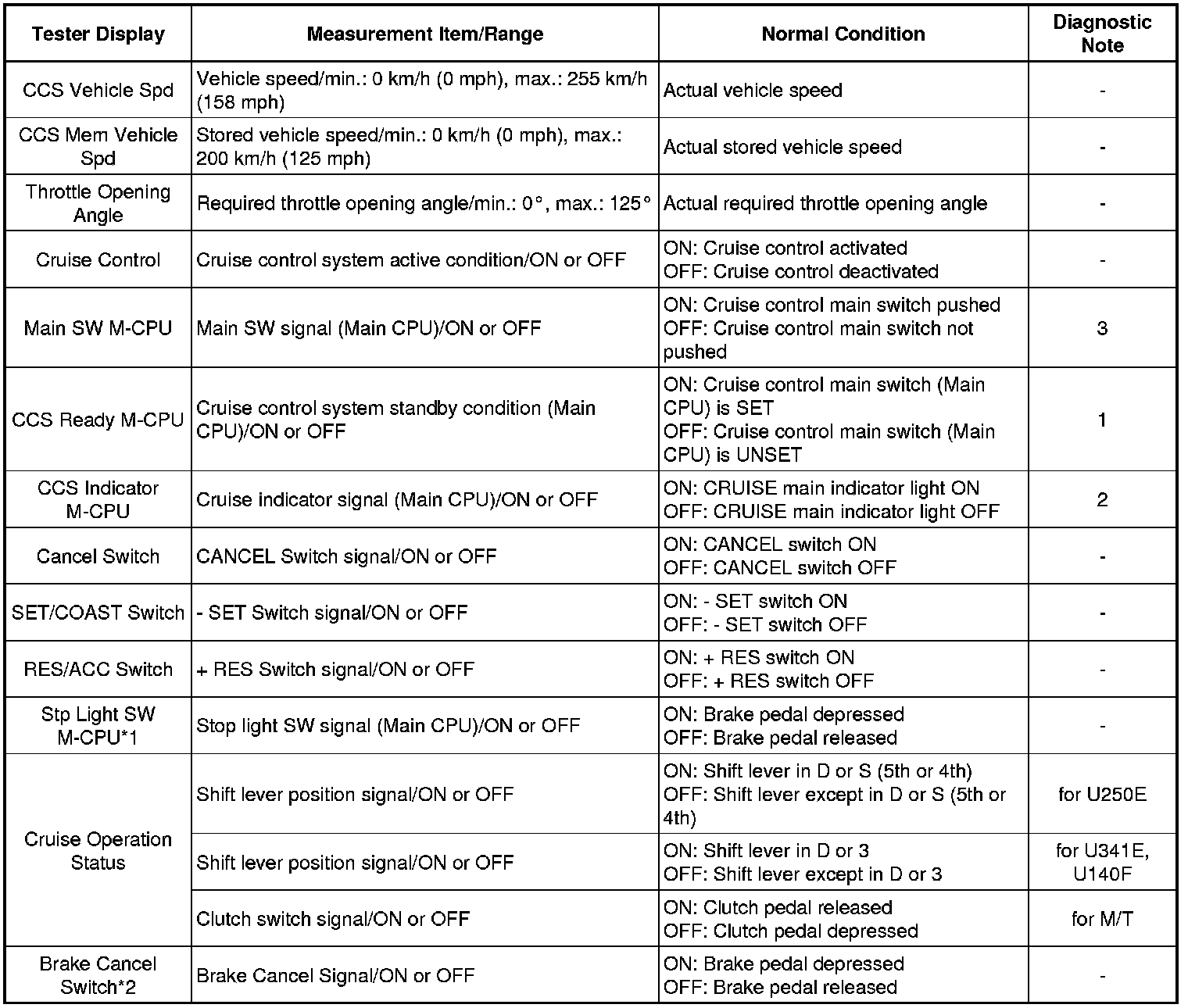 CRUISE CONTROL: CRUISE CONTROL SYSTEM: DATA LIST / ACTIVE TEST