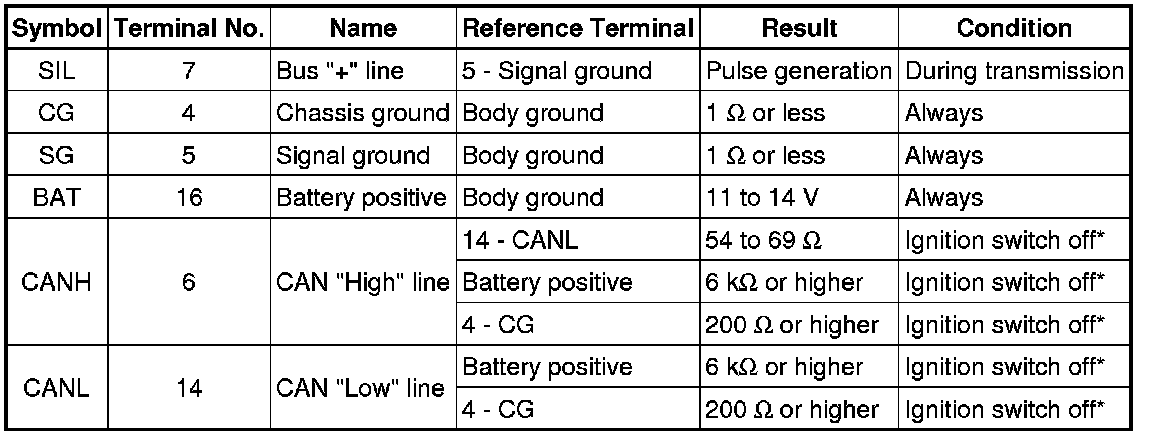 *: Before measuring the resistance, leave the vehicle as is for at least 1 minute and do not operate the ignition switch, any other switches, or the doors.