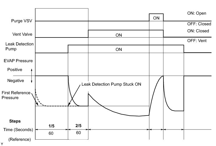 (b) Compare the EVAP pressure in step 3/5 and the second reference pressure (step 5/5).