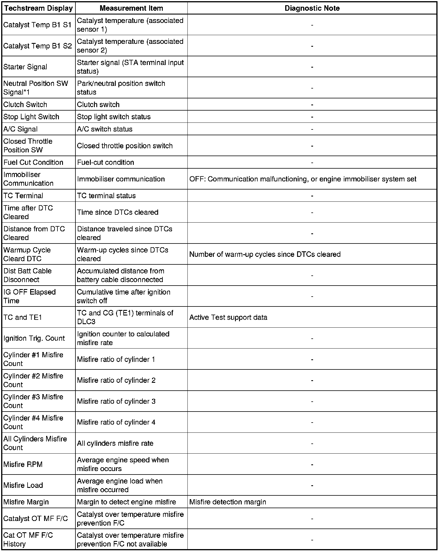 * 1 sets of data from when the DTC was set.