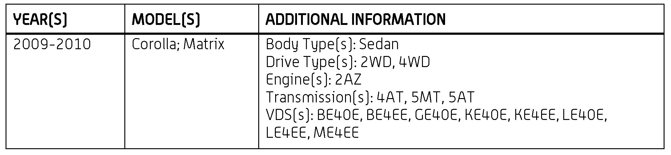'09-'10 Corolla; Matrix