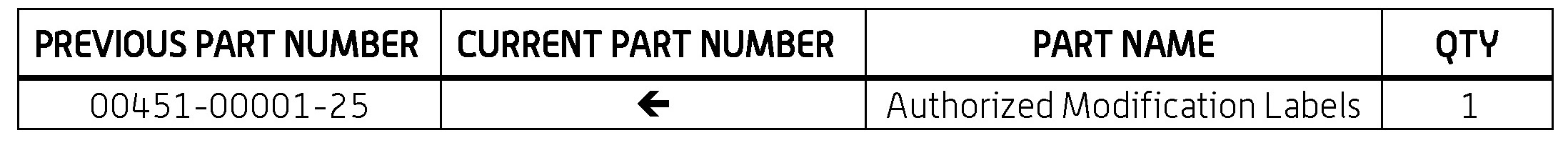 - Authorized Modification Labels may be ordered in packages of 25 from your facing PDC.