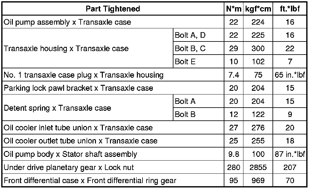 SPECIFICATIONS: U140F AUTOMATIC TRANSMISSION / TRANSAXLE: TORQUE SPECIFICATIONS