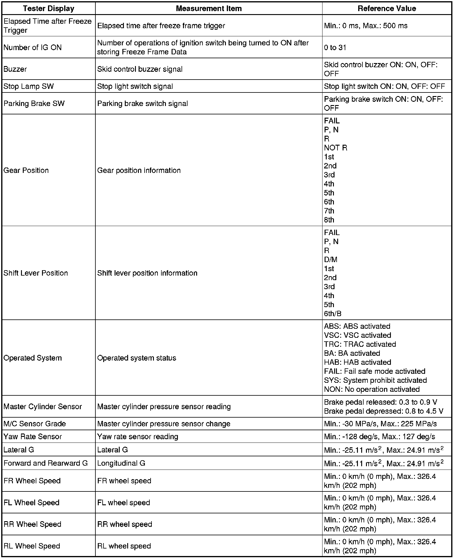 BRAKE CONTROL / DYNAMIC CONTROL SYSTEMS: VEHICLE STABILITY CONTROL SYSTEM (for 2ZR-FE): FREEZE FRAME DATA