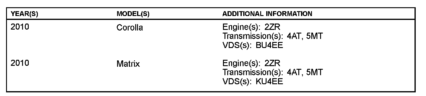 Some 2010 model year Corolla and Matrix vehicles may exhibit a MIL "ON" condition with one or more of the following Diagnostic Trouble Codes (DTCs):