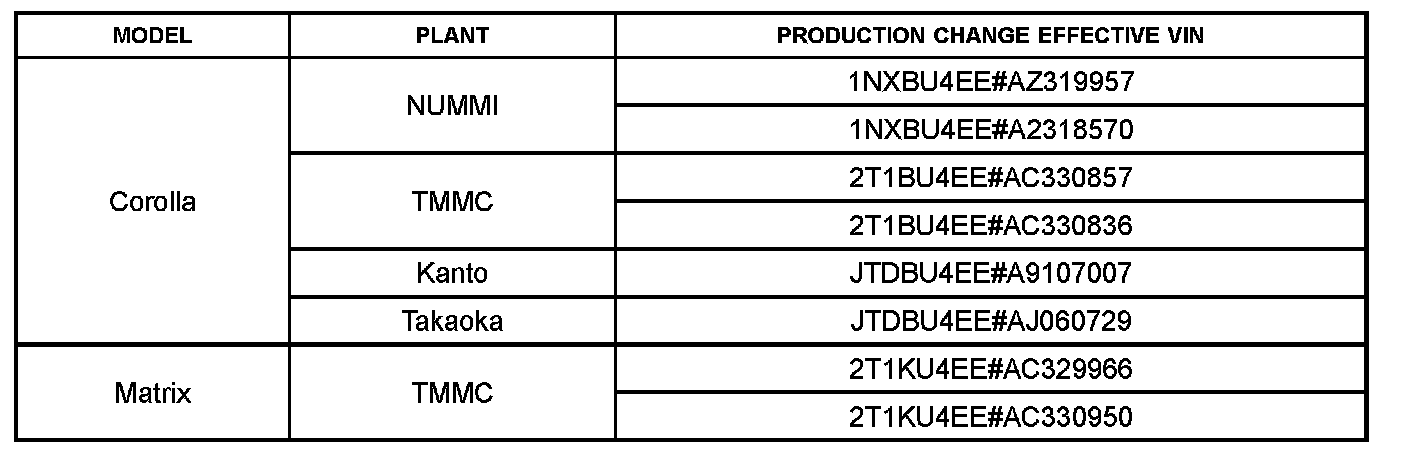 ^ Production Change Information has been updated with VIN information for Japan-built Corolla vehicles.
