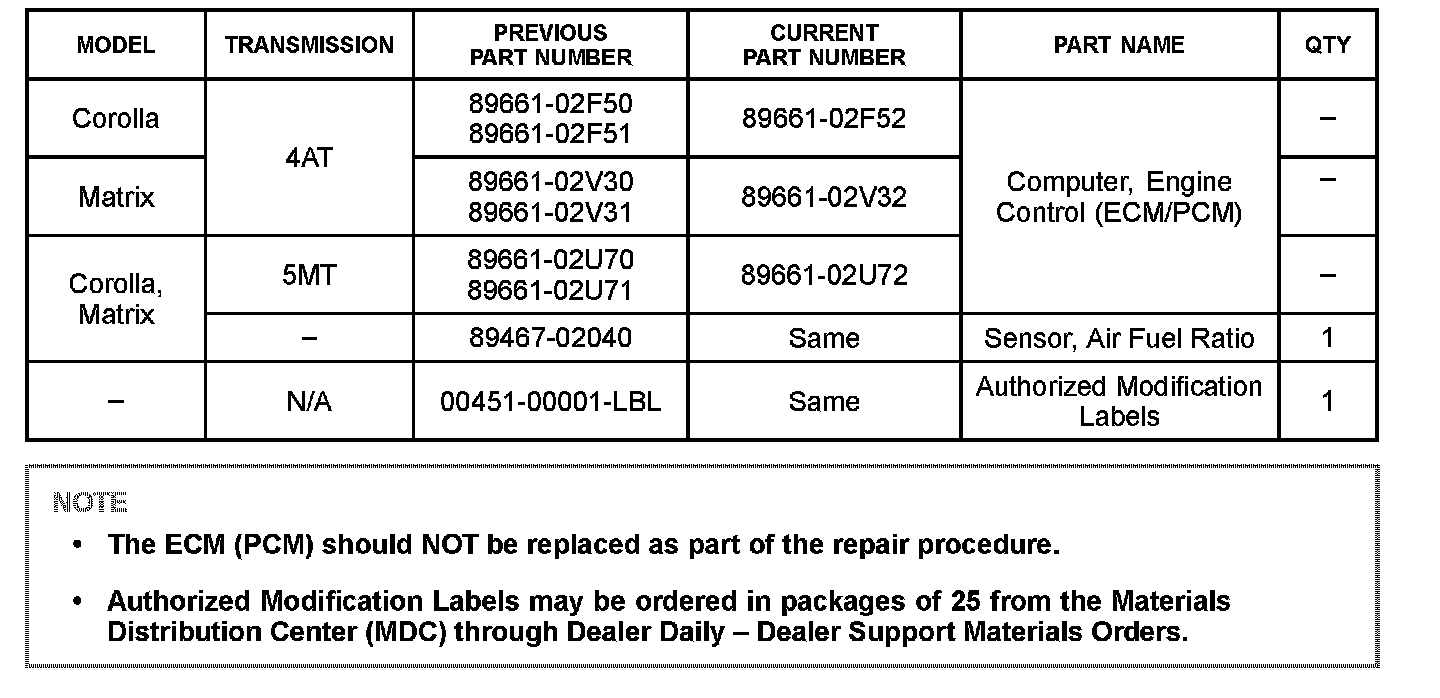 ^ ECM part number [Refer to the Parts Information section for the CURRENT PART NUMBER]