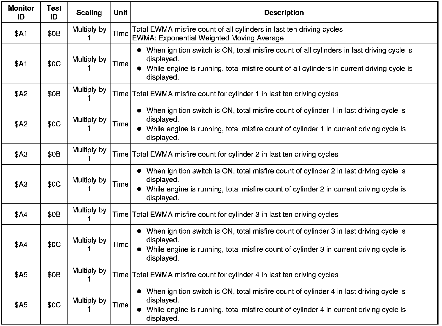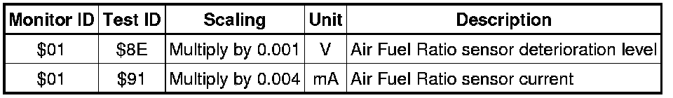 If you use a generic scan tool, multiply the value by the scaling value listed below.