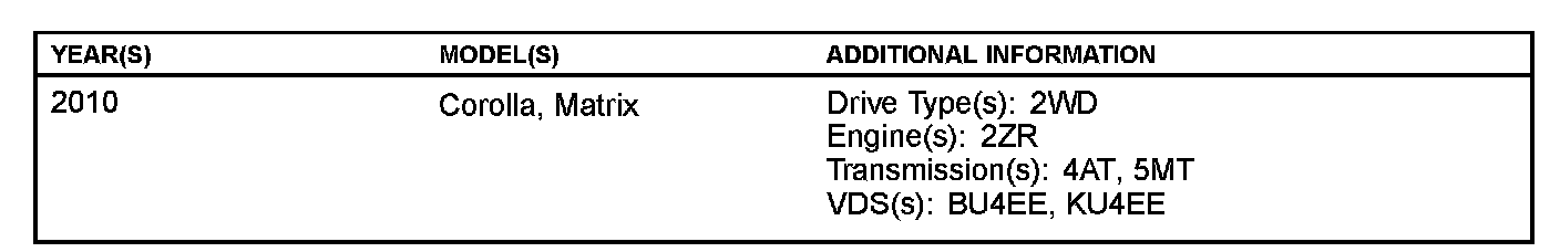 Refer to the Technical Information System (TIS) 2010 model year Corolla or Matrix Repair Manual: