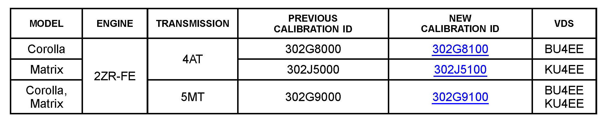 ^ Calibration ID(s) [Refer to the Calibration Identification Chart for the NEW CALIBRATION ID]
