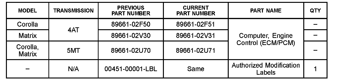 ^ ECM part number [Refer to the Parts Information section for the CURRENT PART NUMBER]