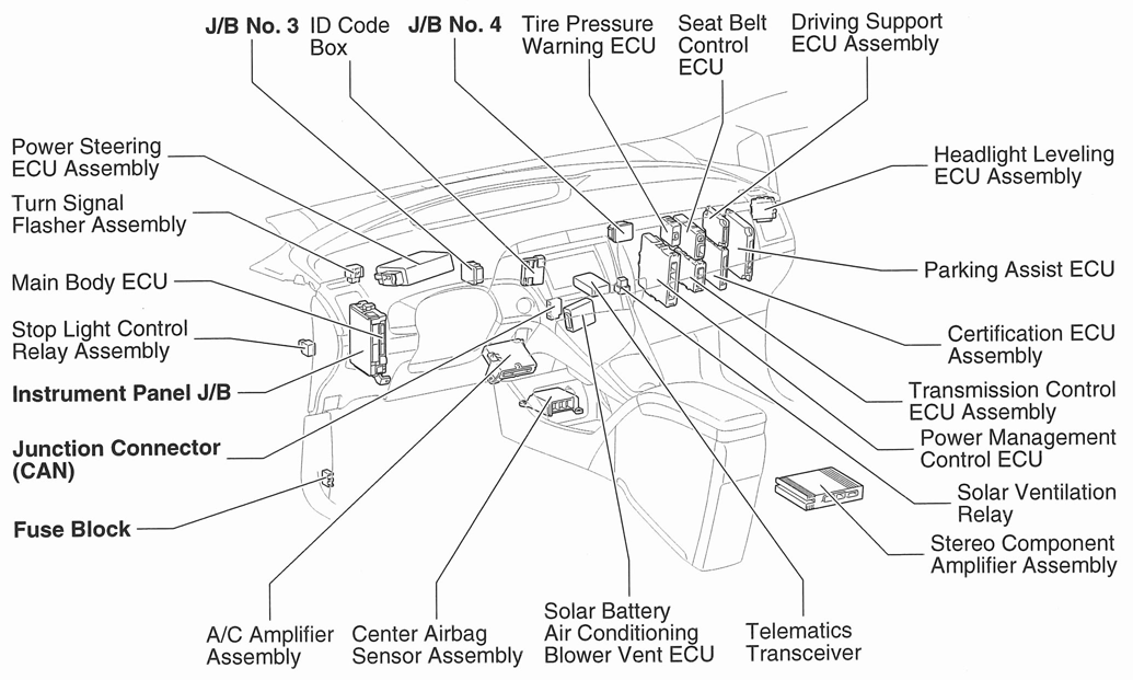 | J/B No. 3 | Behind left side of dash. See Figure. |