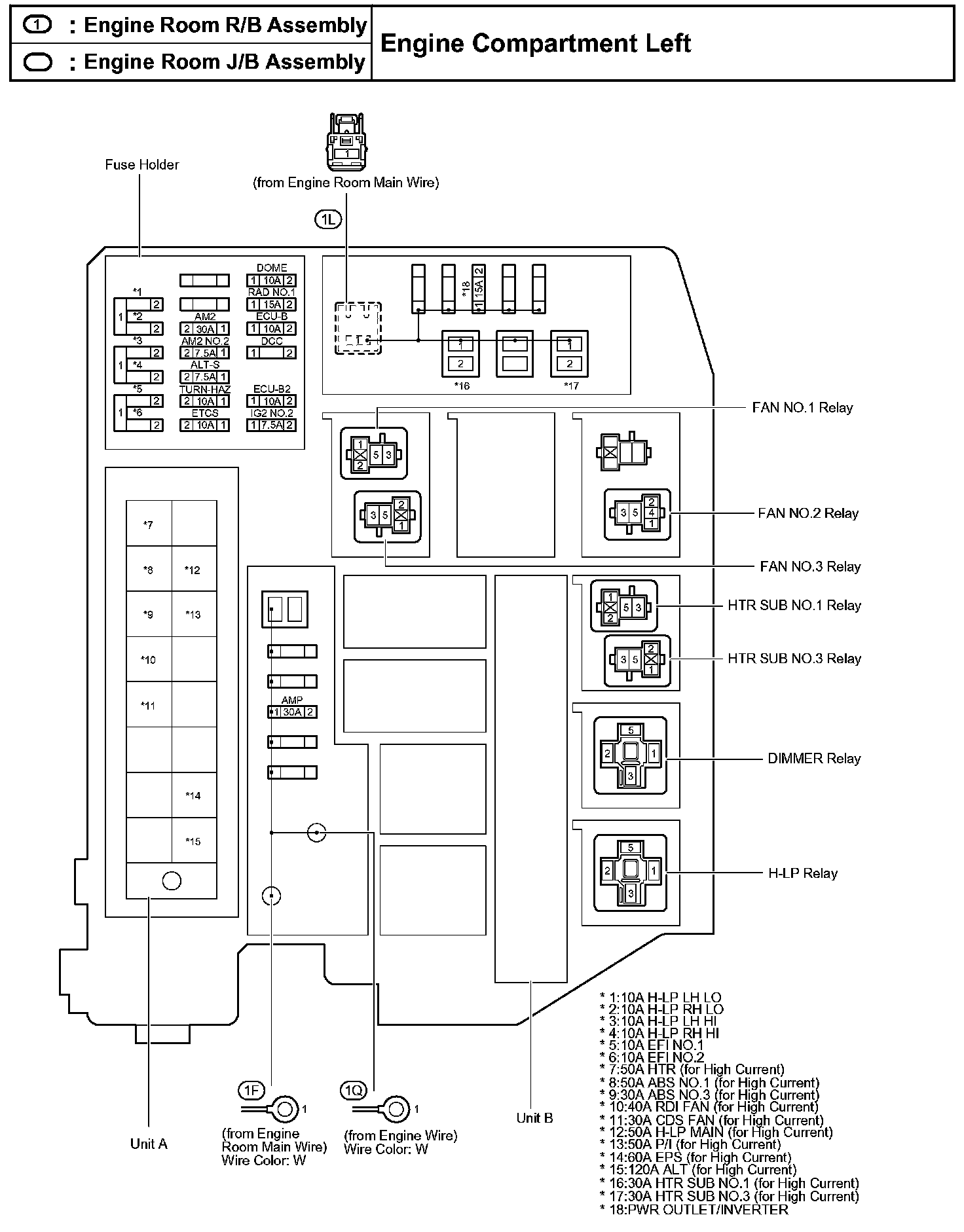 Engine Room R/B, J/B Assembly - Engine Compartment Left: