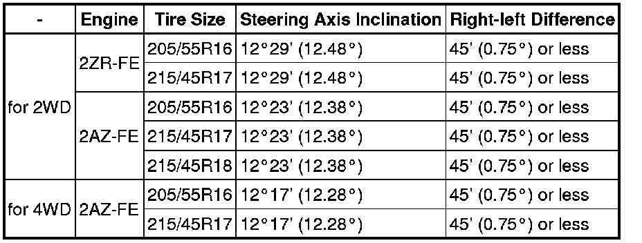 4. INSPECT CAMBER, CASTER AND STEERING AXIS INCLINATION