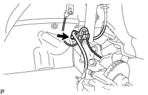 (c) Remove the clamp and separate the front speed sensor from the front shock absorber.