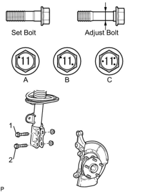 Check the combination of installed bolts. Select appropriate bolts from the table below to adjust the camber to the specified values.