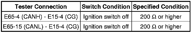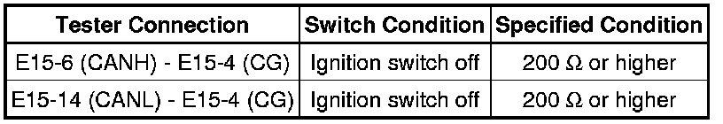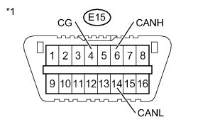There may be a short circuit between the CAN bus line and GND when there is no resistance between terminals 6 (CANH) and 4 (CG) or terminals 14 (CANL) and 4 (CG) of the DLC3.