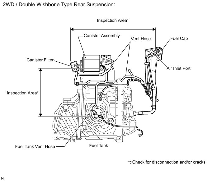 When replacing the canister, check the canister pump module interior and related pipes for water, fuel and other liquids. If liquids are present, check for disconnections and/or cracks in the following: 1) the pipe from the air inlet port to the canister pump module; 2) the canister filter; and 3) the fuel tank vent hose.