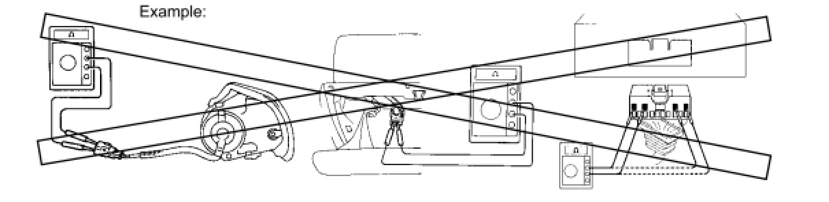 (6) When measuring the resistance between terminals of a wire connector, insert the tester probe carefully to prevent terminals from bending.