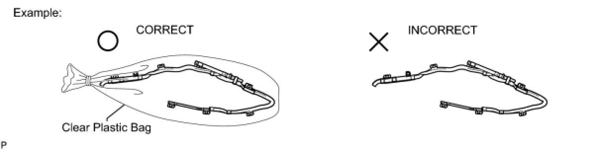 (1) Always place a removed or new curtain shield airbag assembly in a clear plastic bag, and keep it in a safe place.