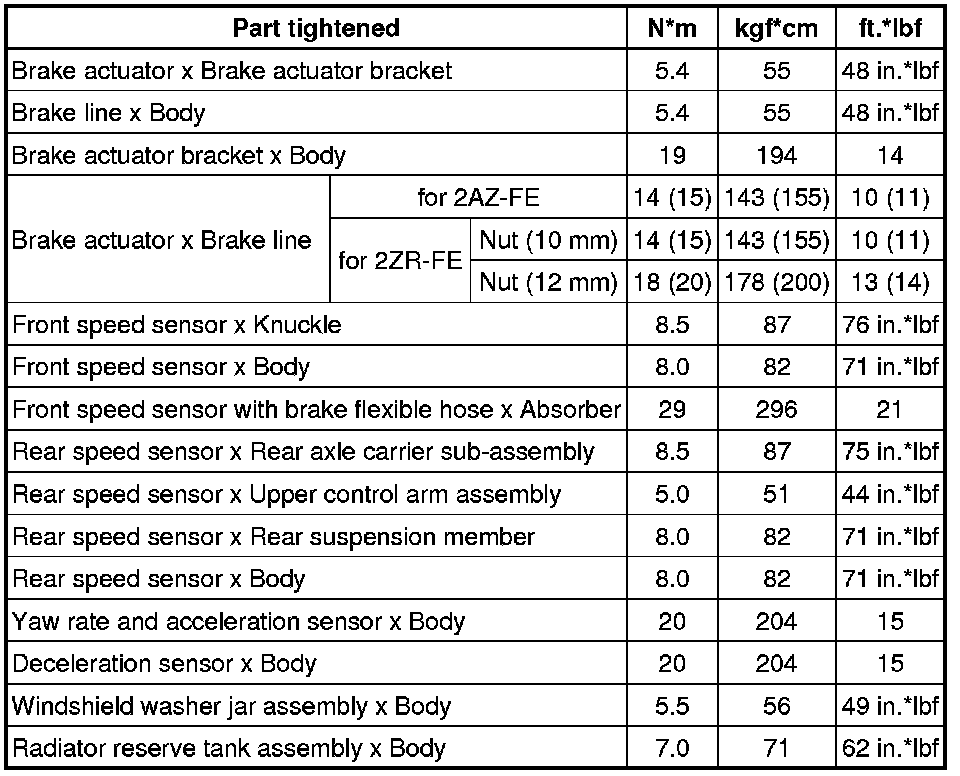 SPECIFICATIONS: BRAKE CONTROL / DYNAMIC CONTROL SYSTEMS: TORQUE SPECIFICATIONS
