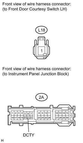 4. CHECK HARNESS AND CONNECTOR (FRONT DOOR COURTESY LIGHT SWITCH - MAIN BODY ECU)