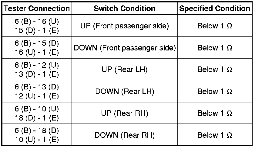 (a) Check that the passenger door power window and rear door power window manual UP / DOWN function operates normally.