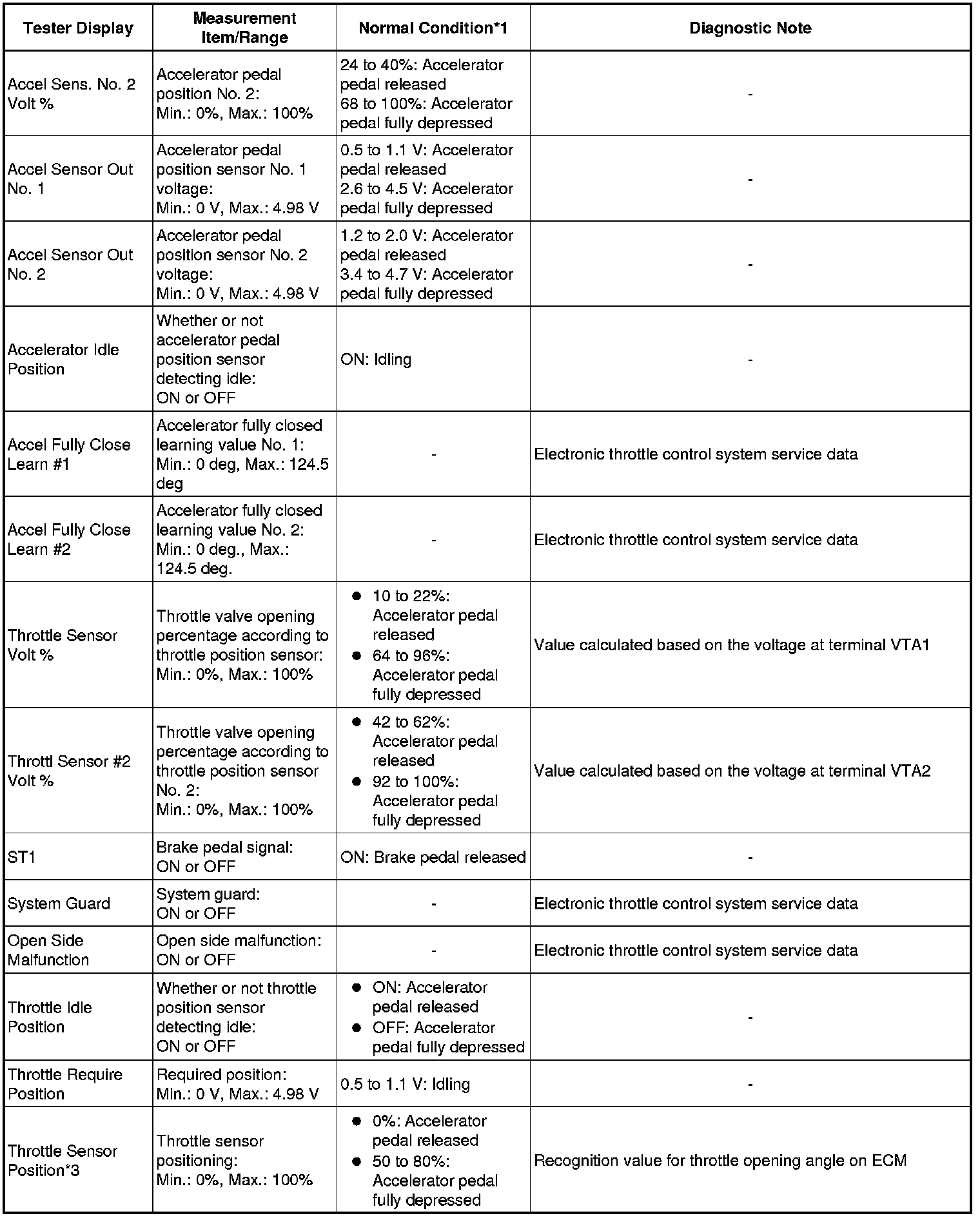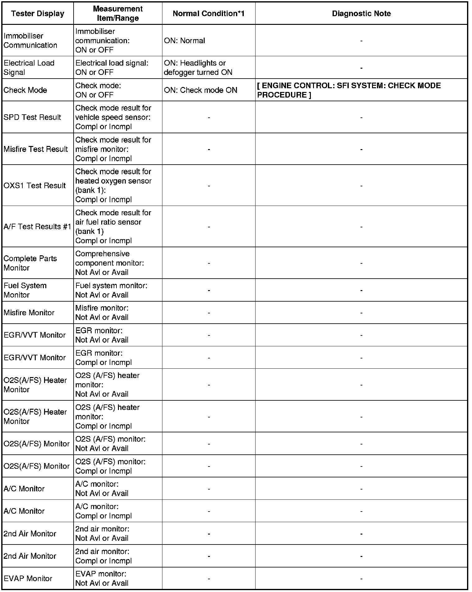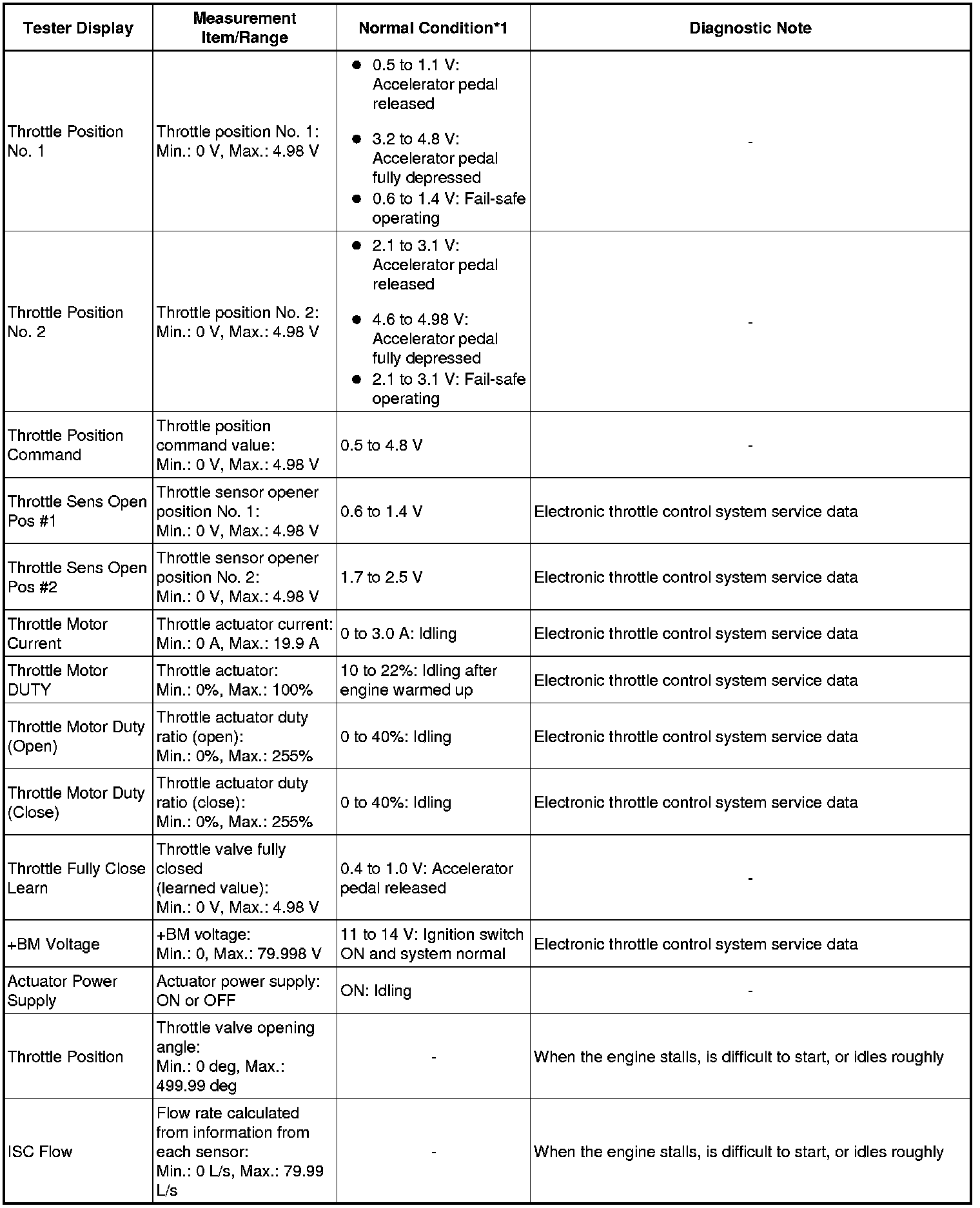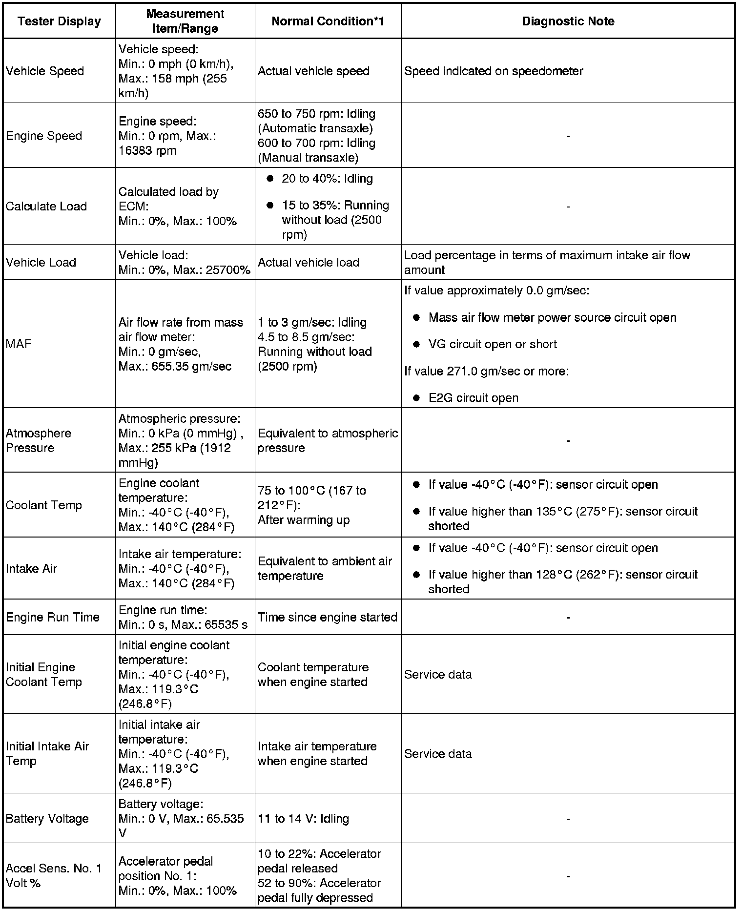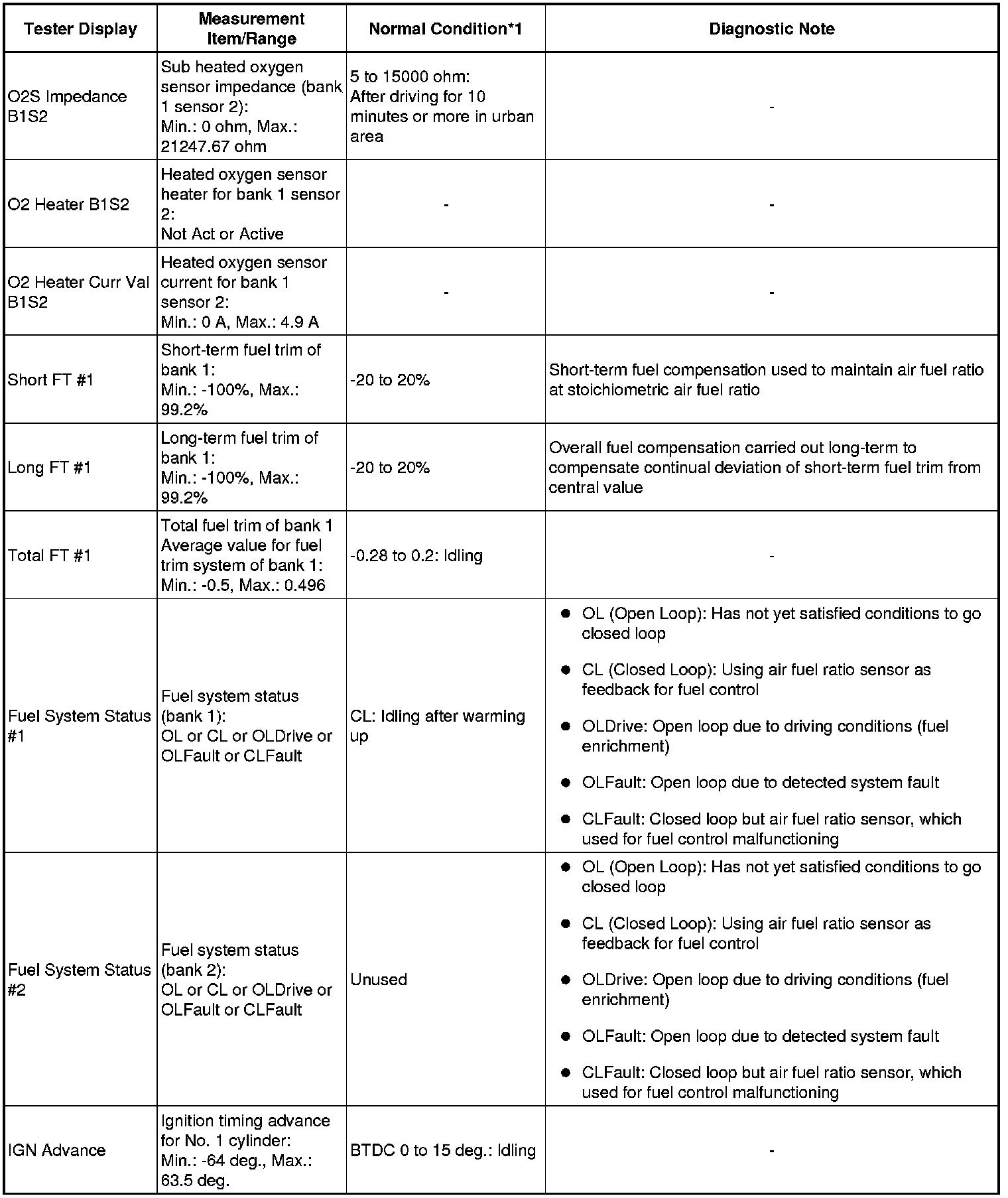 * *1: If no idling conditions are specified, the shift lever should be in N (neutral) or P, and the A/C switch and all accessory switches should be off.