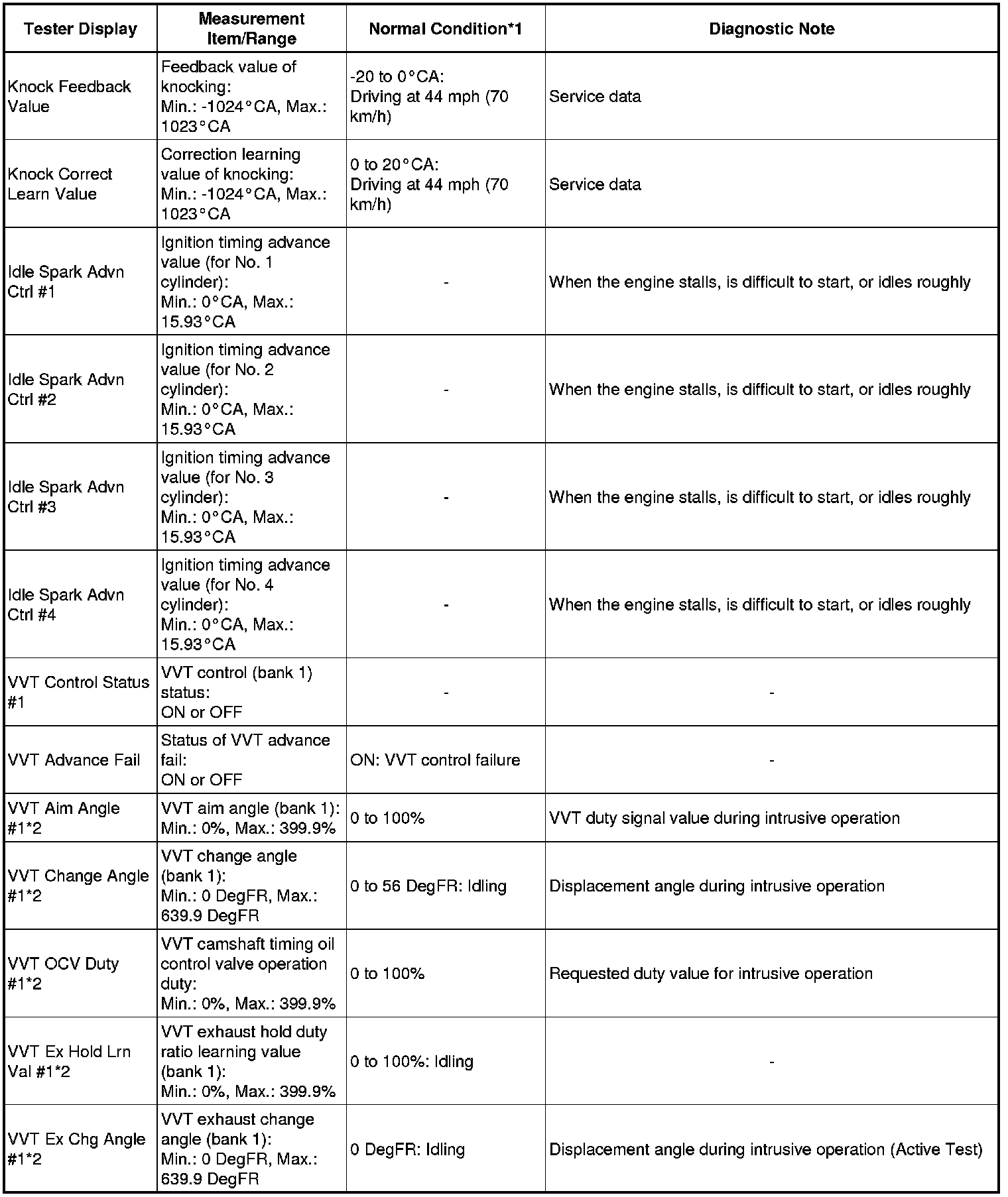 * *2: Values are only displayed when performing the Active Tests: Control the VVT System (Bank 1), Control the VVT Linear (Bank1) and Control the Exhaust Liner (Bank 1). For other Active Tests, the value will be 0.