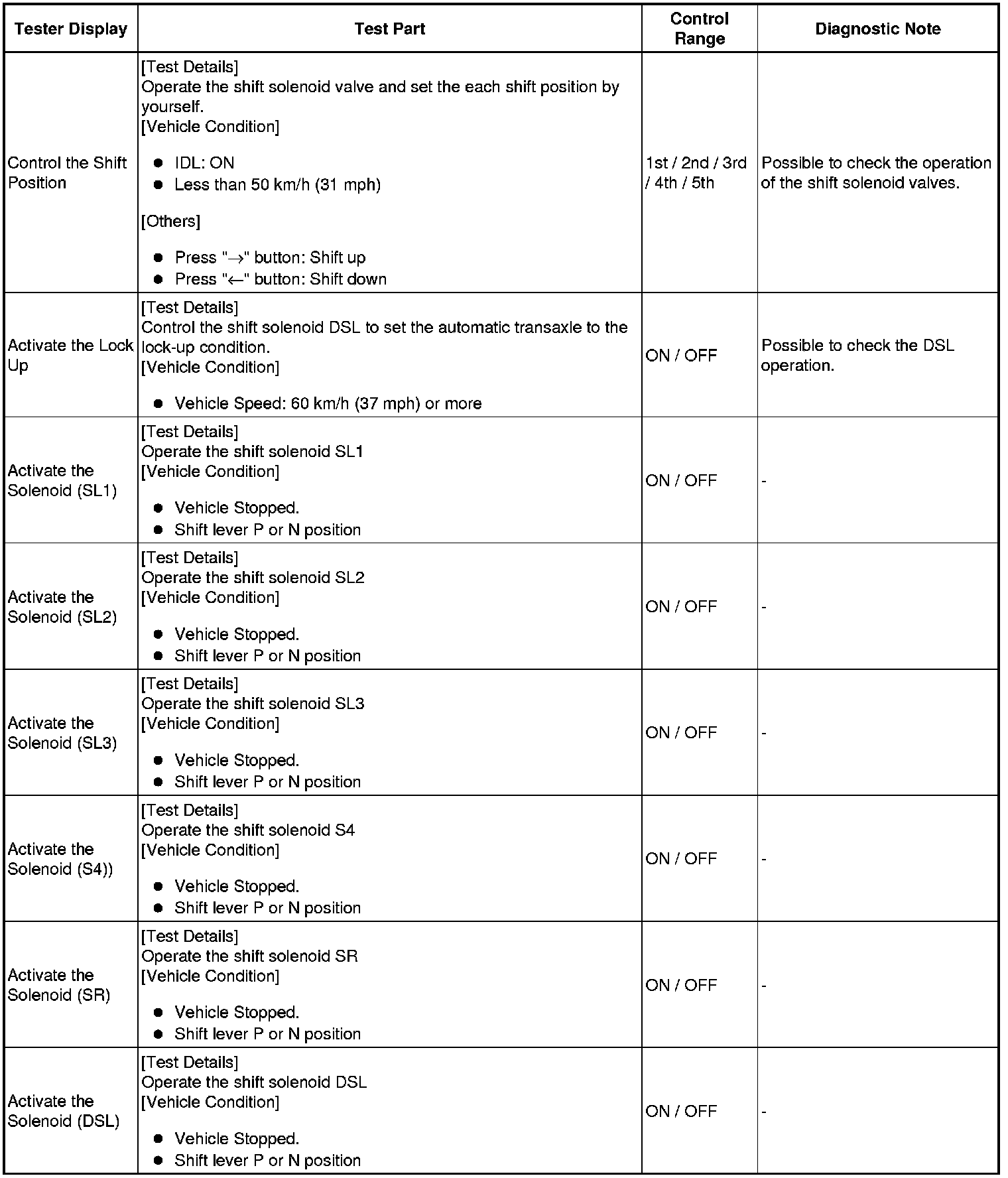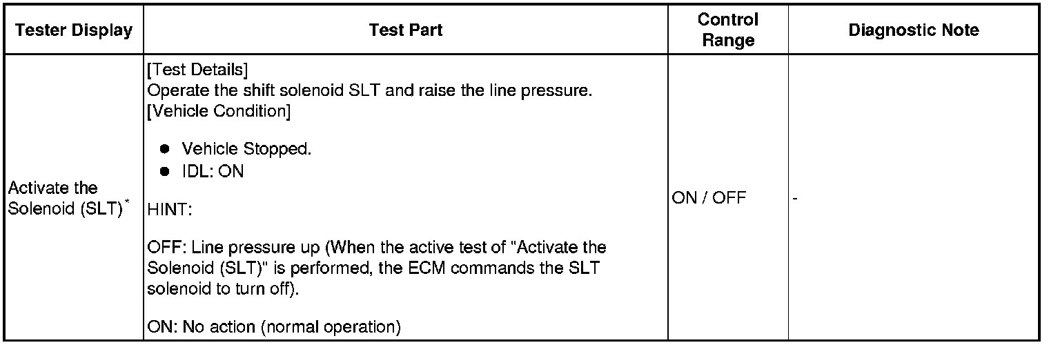*: "Activate the Solenoid (SLT)" in the Active Test is performed to check the line pressure changes by connecting the SST to the automatic transaxle, which is used in the HYDRAULIC TEST Hydraulic Test as well.