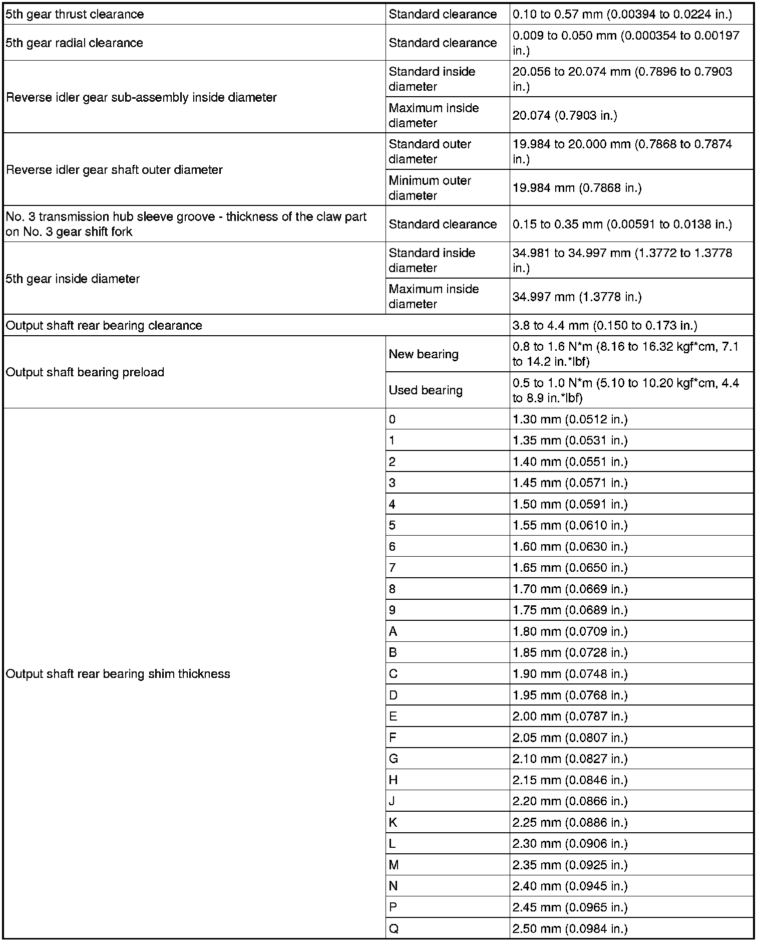 SPECIFICATIONS: E351 MANUAL TRANSMISSION / TRANSAXLE: SERVICE DATA